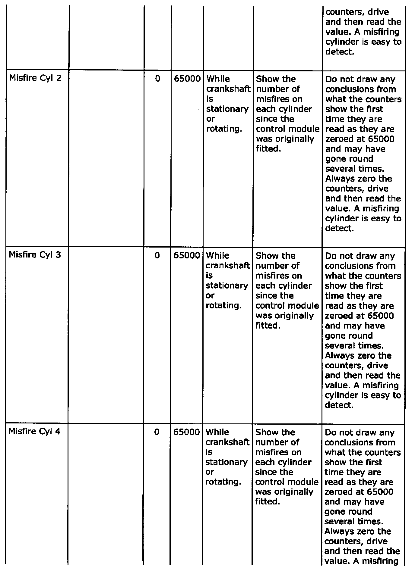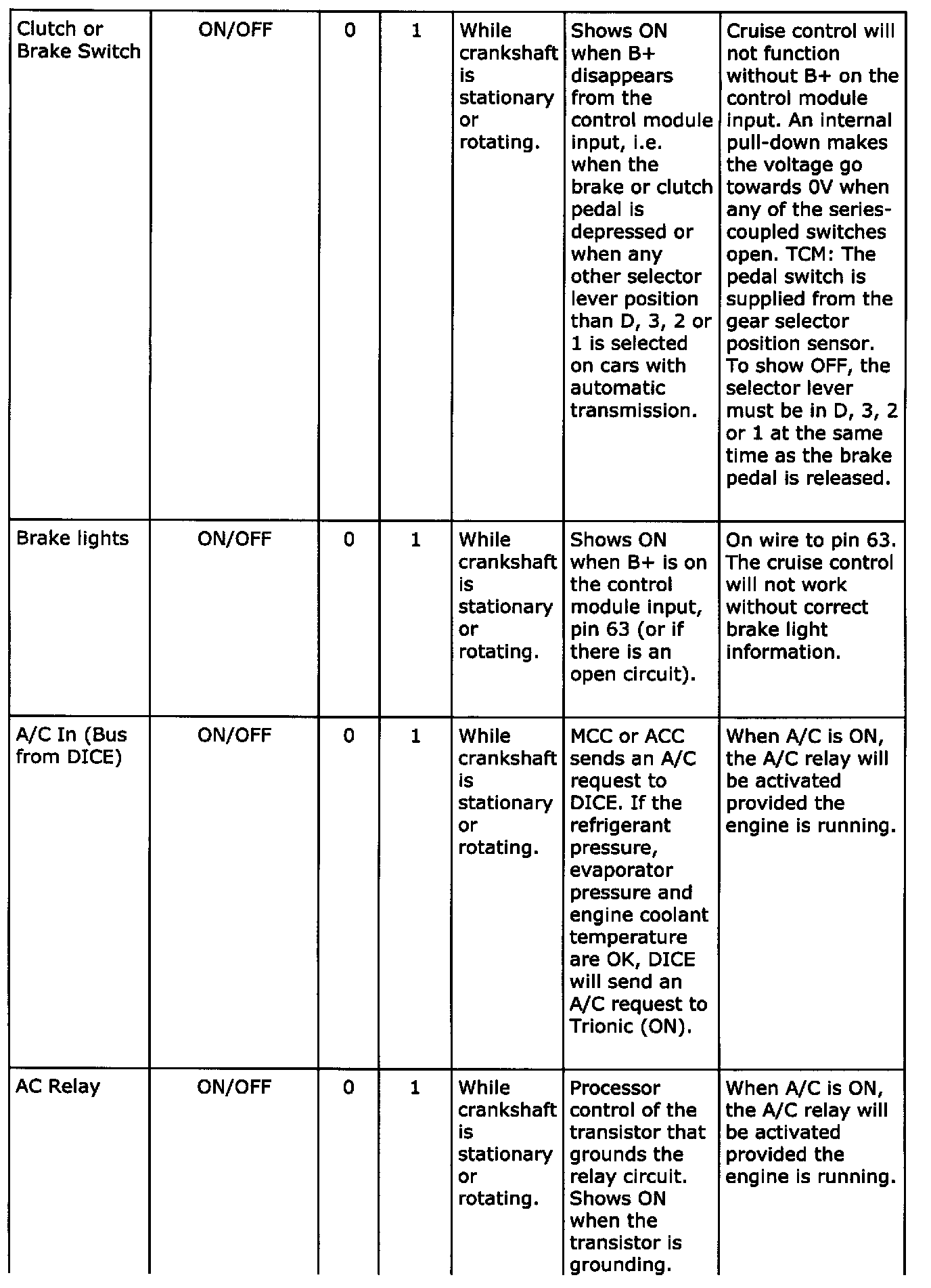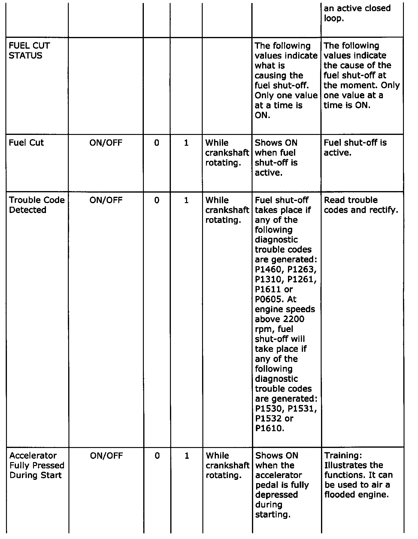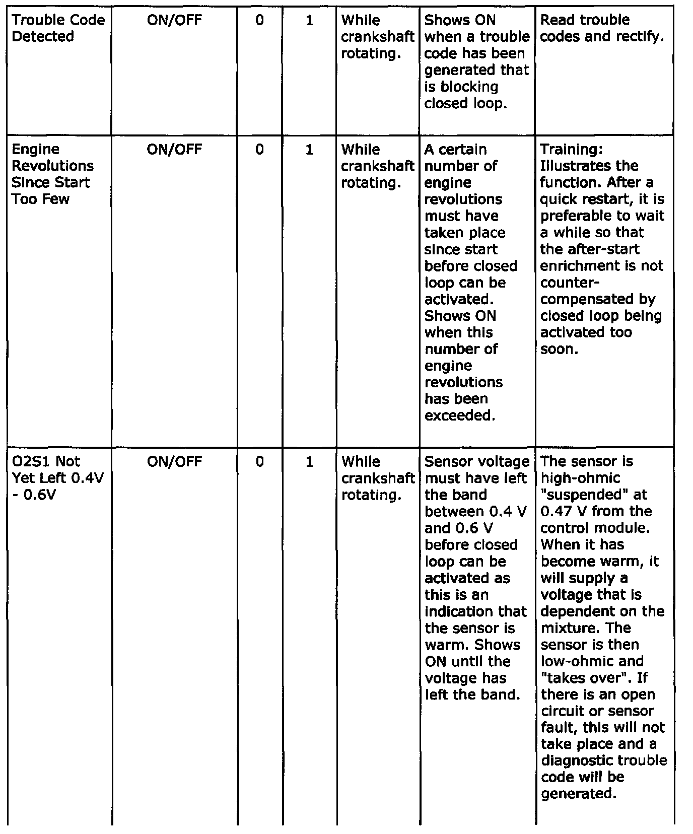 Diagnostic trouble codes