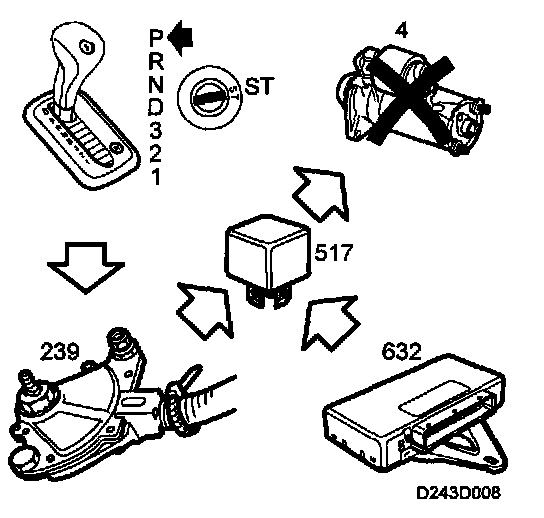 In all other gear positions the switch is open, i.e. the starter relay is not supplied with current.