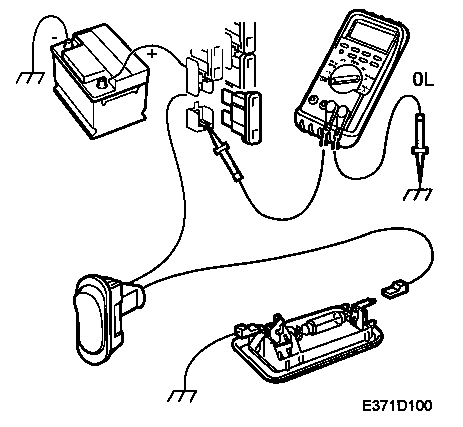 4. Carefully jiggle the wiring harness and check that the multimeter shows a constant infinite value (OL).