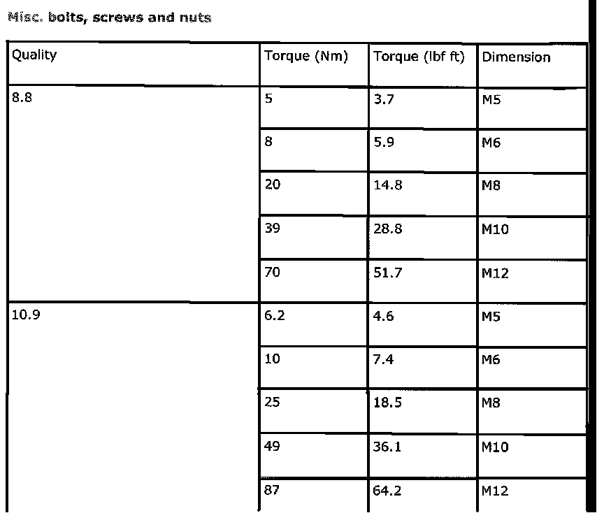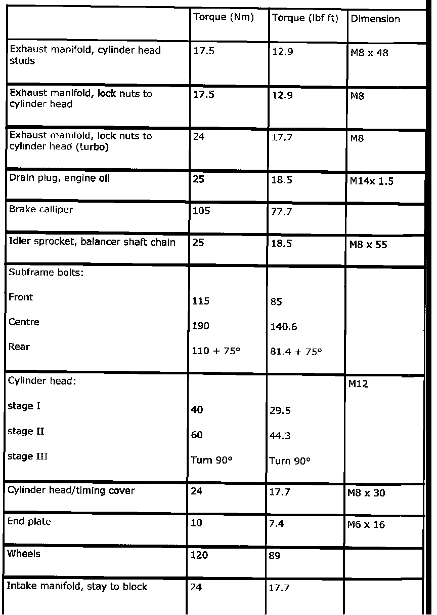 Torque Specifications