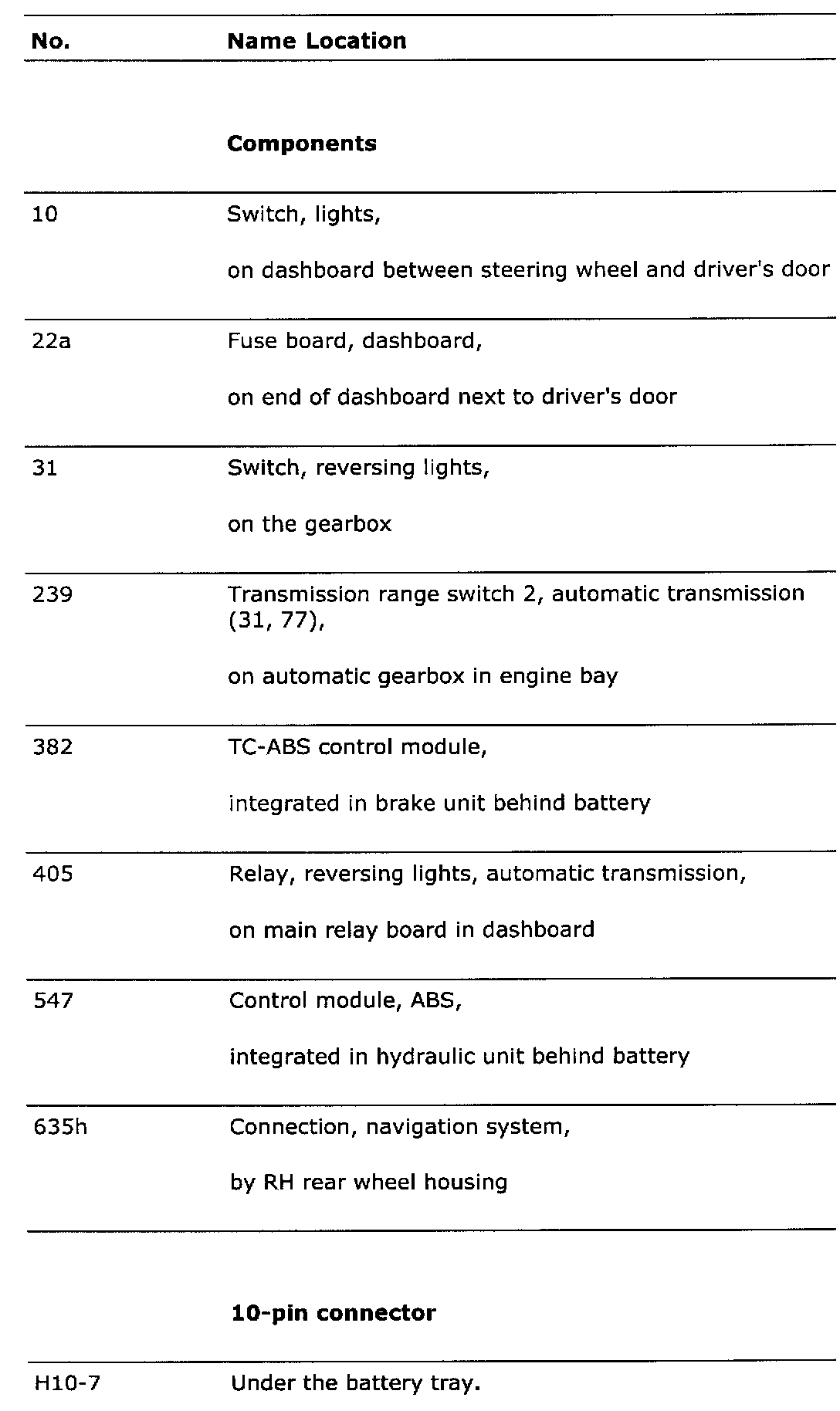 List of components