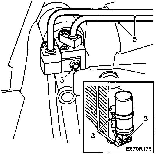 5 Detach the A/C pipe connections from the receiver.