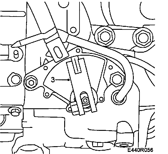 3. Move the selector lever to position N, remove the selector lever cable's lever and fit tool 87 92 46 Check that the line marked on the gear selector position sensor is visible in the center of the tool's notch.