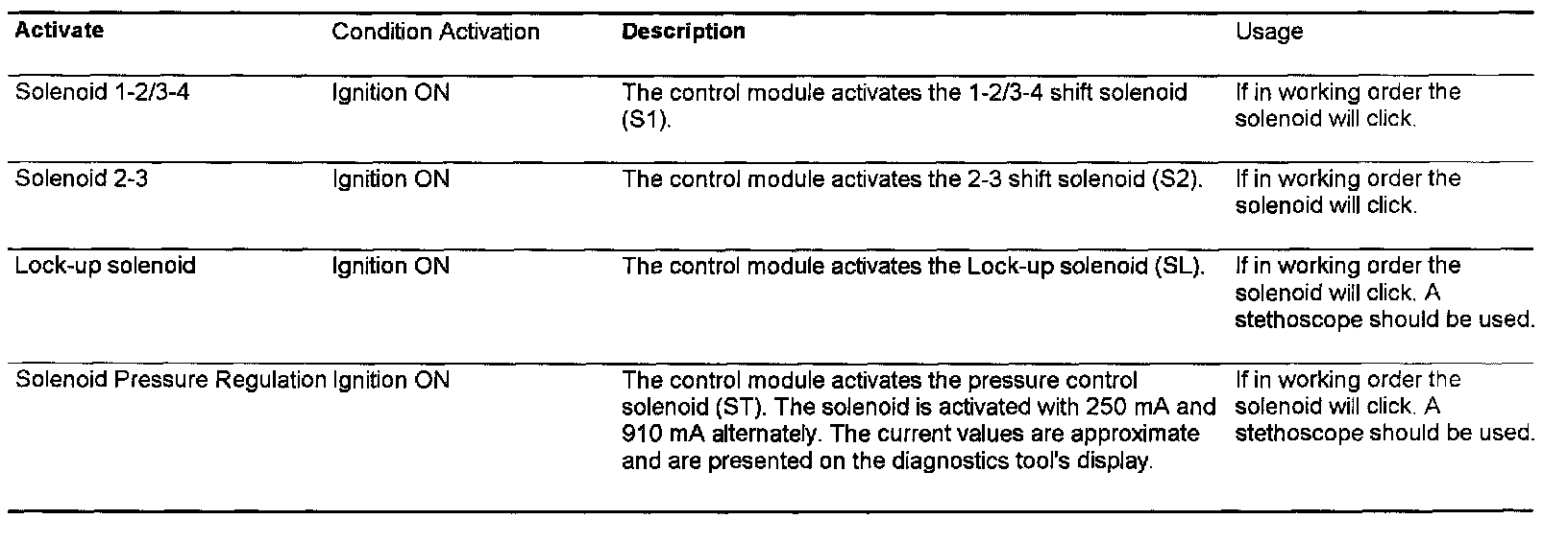IMPORTANT: Activation mode can only be entered in selector lever position N. In other selector lever positions the diagnostics tool's display will show SHIFT TO N AND THEN PRESS ENTER. All activation commands can be canceled by pressing Exit.