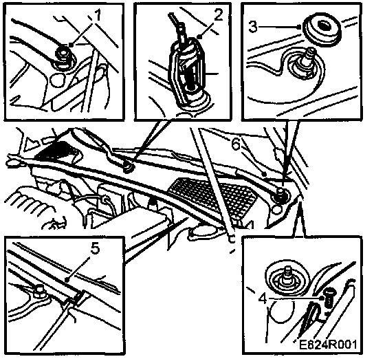 2. Use a puller, special tool No.85 80 144 to remove the wiper arms. Remove the nuts and wiper arms.