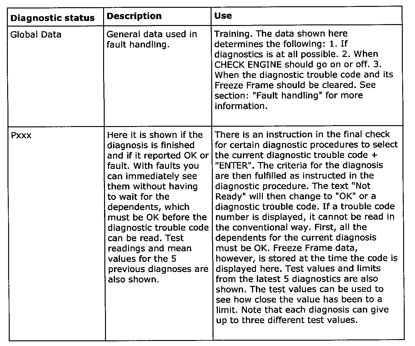 Diagnostic status