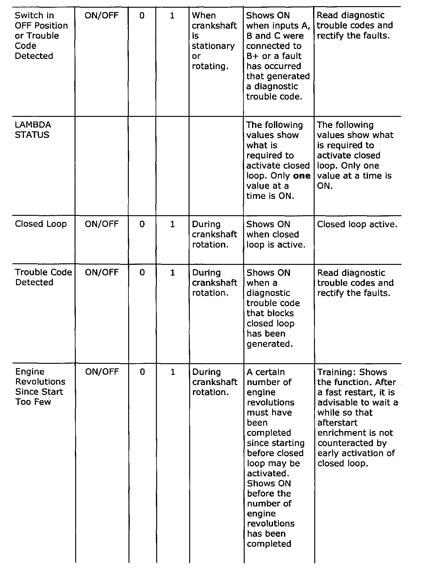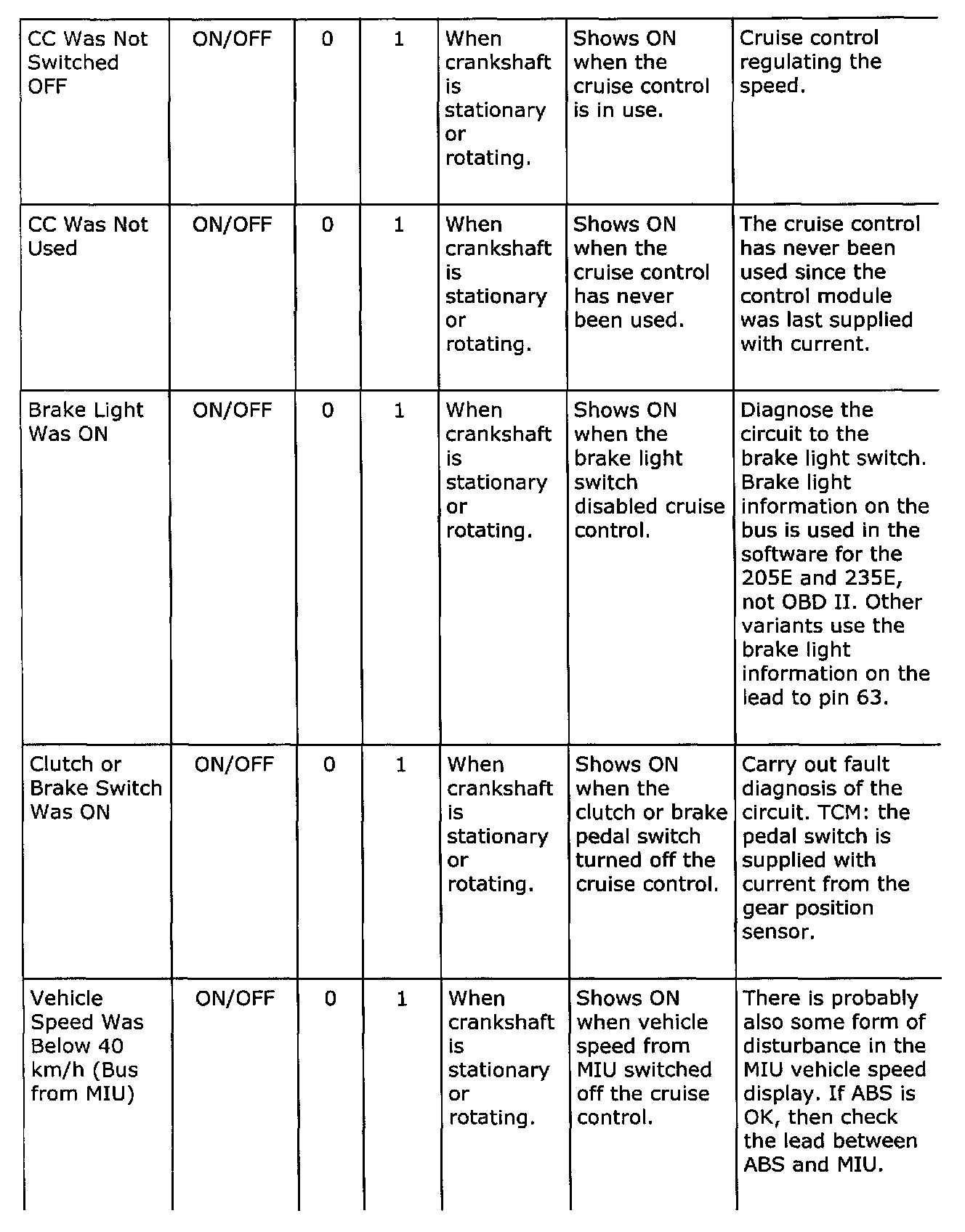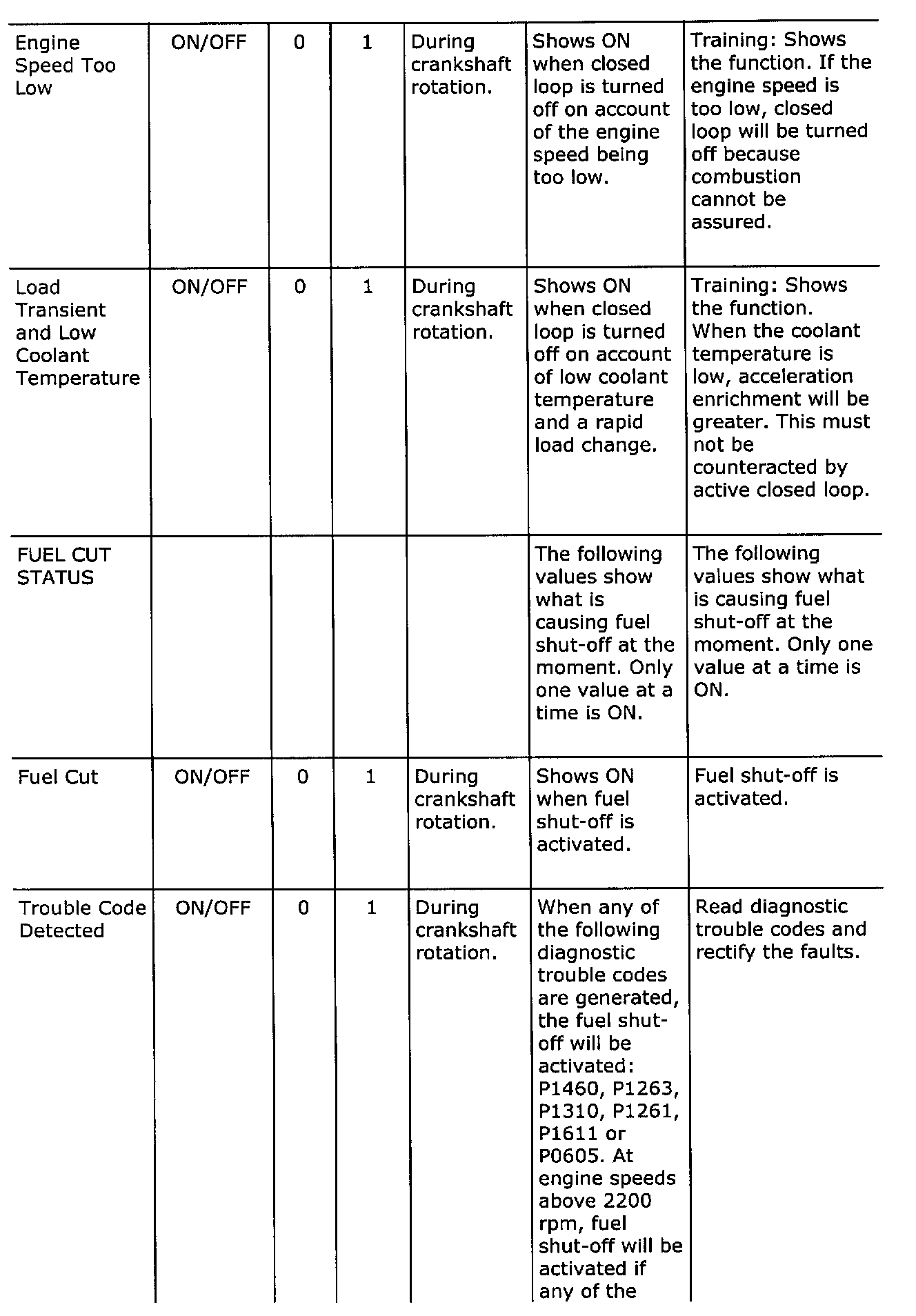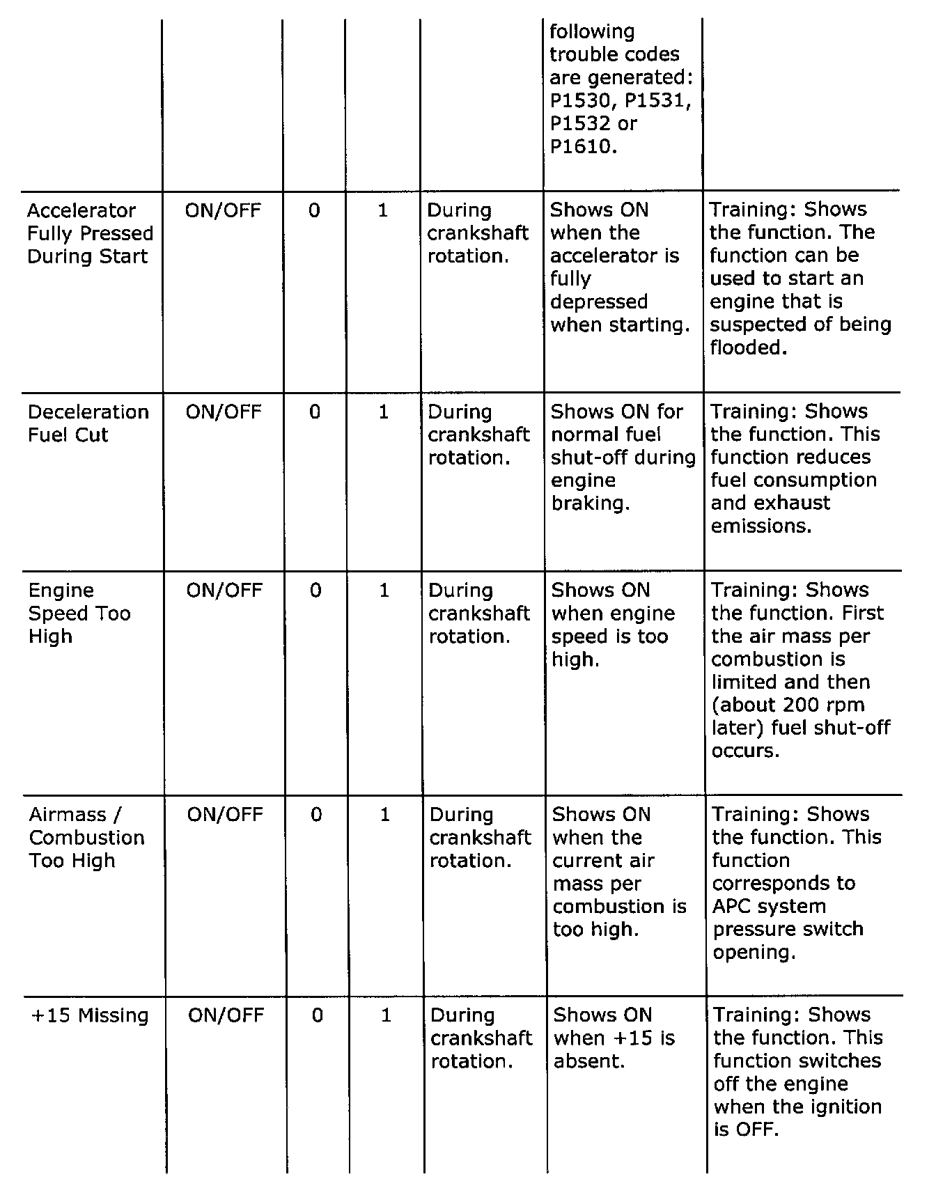 Diagnostic trouble codes
