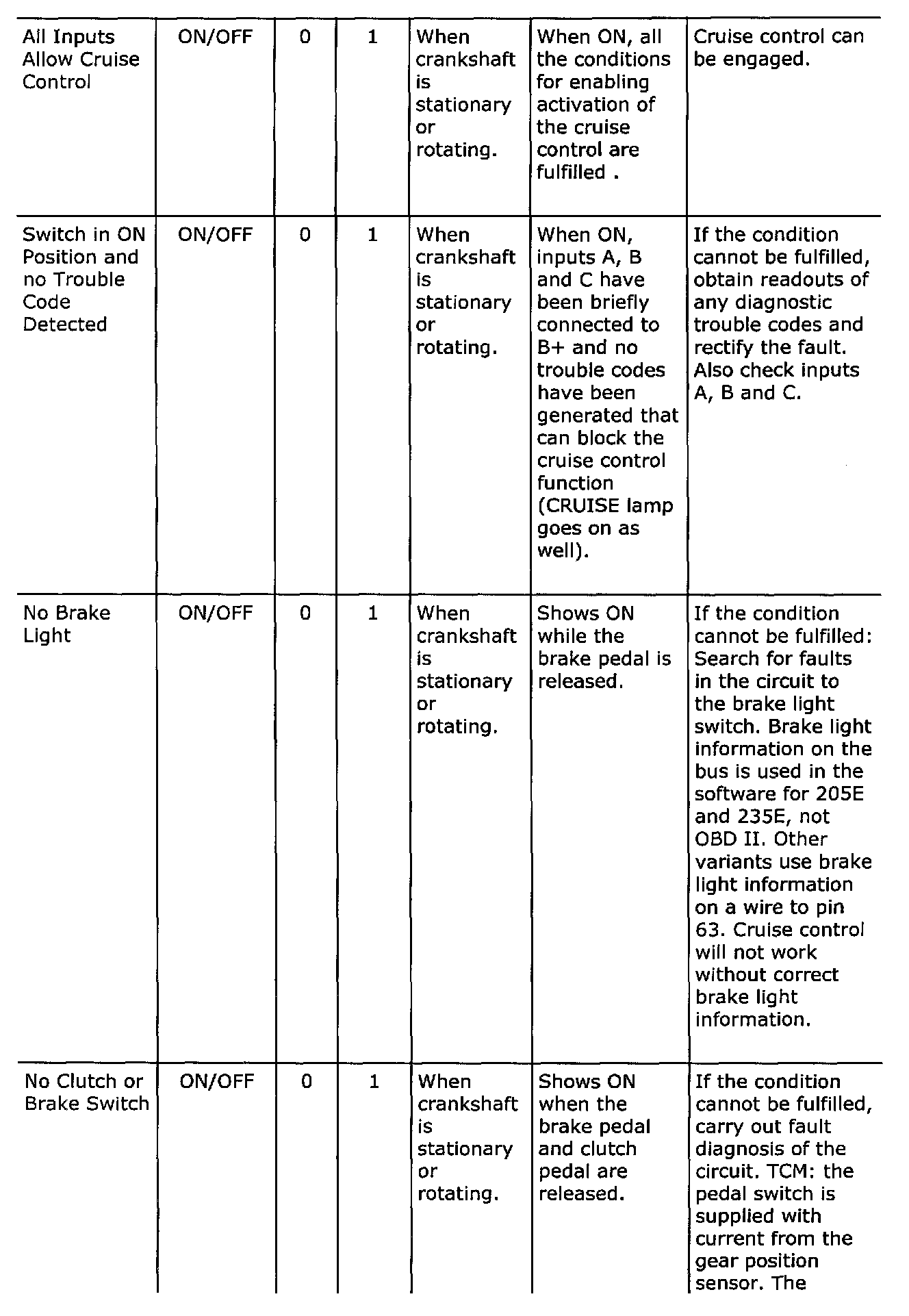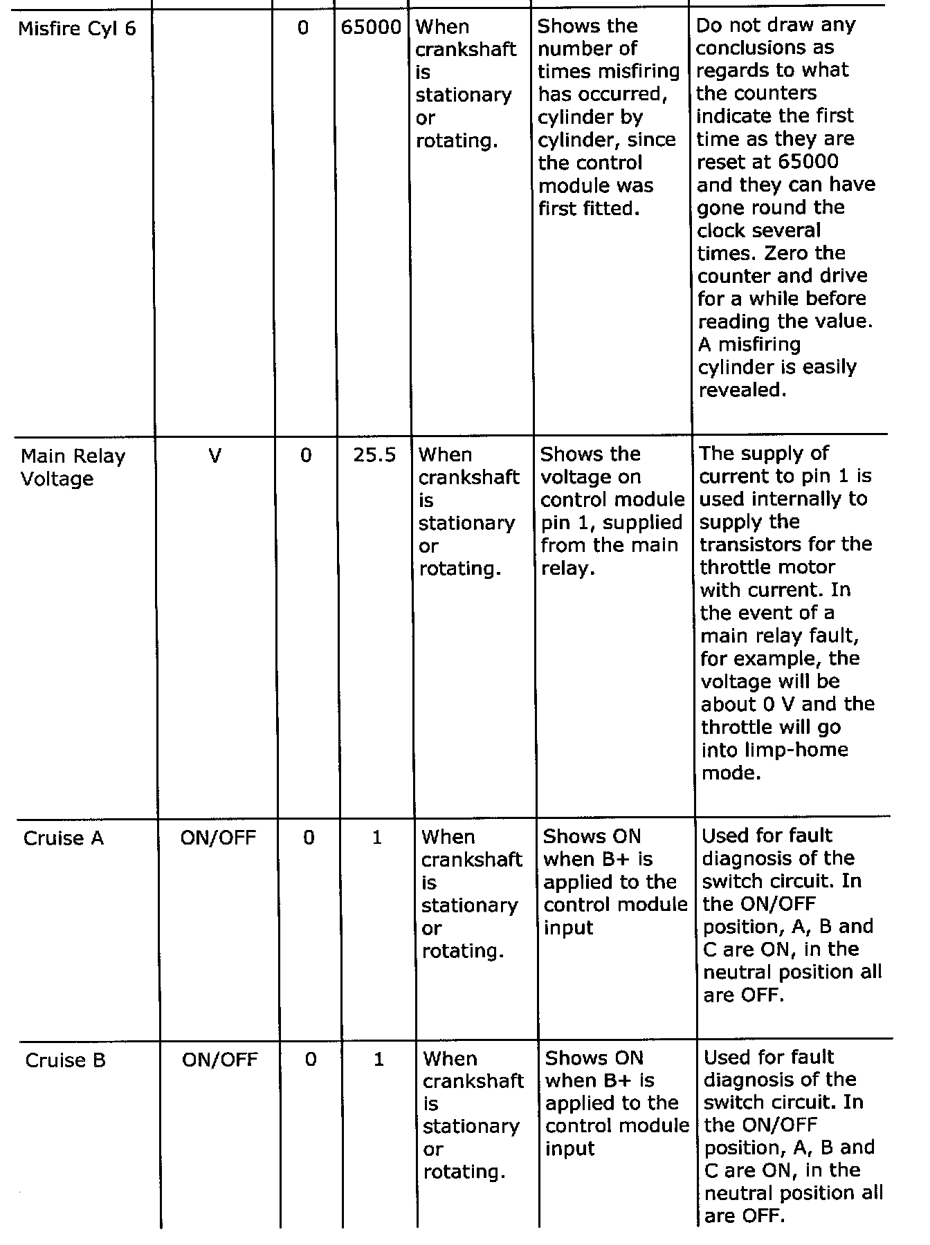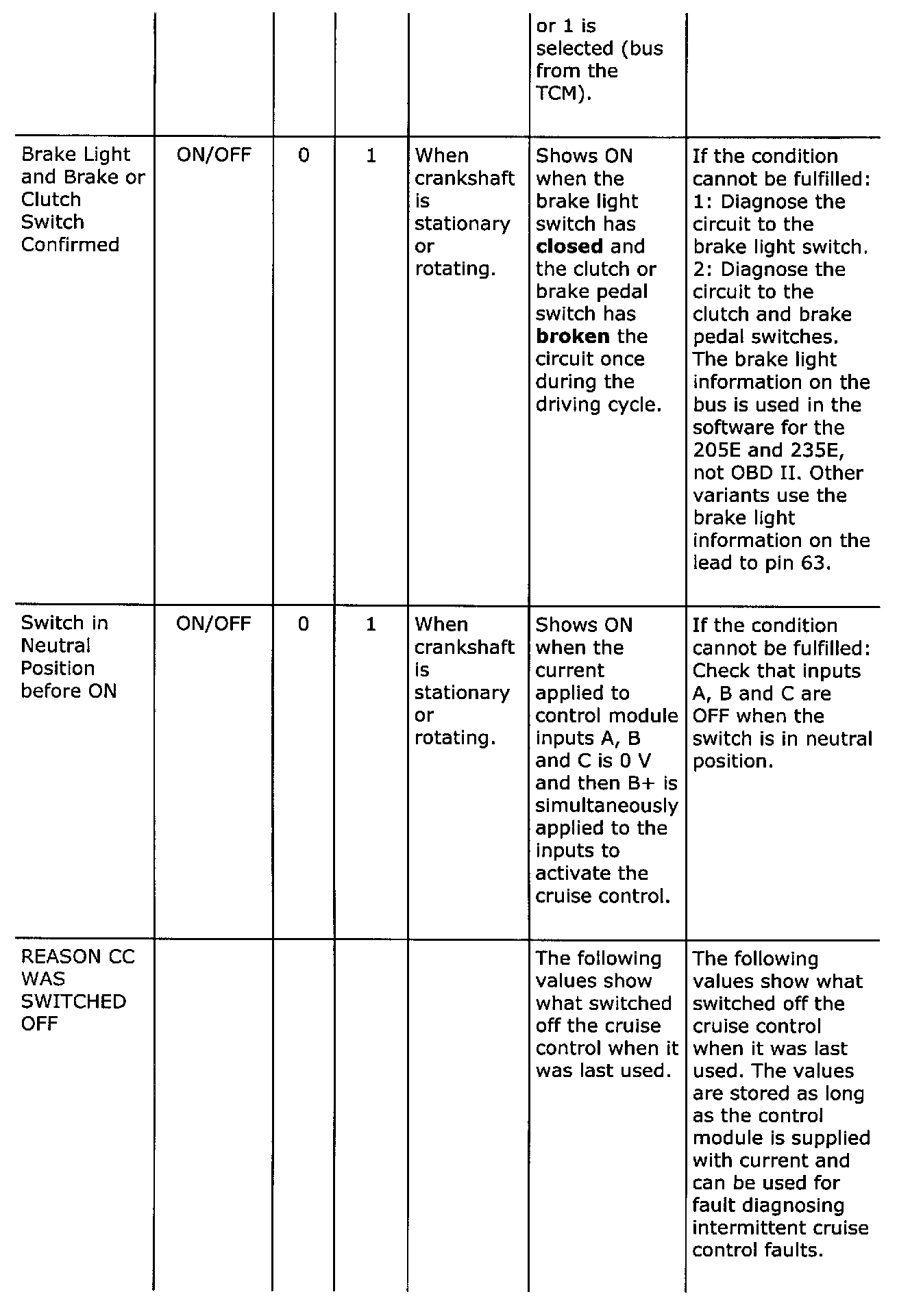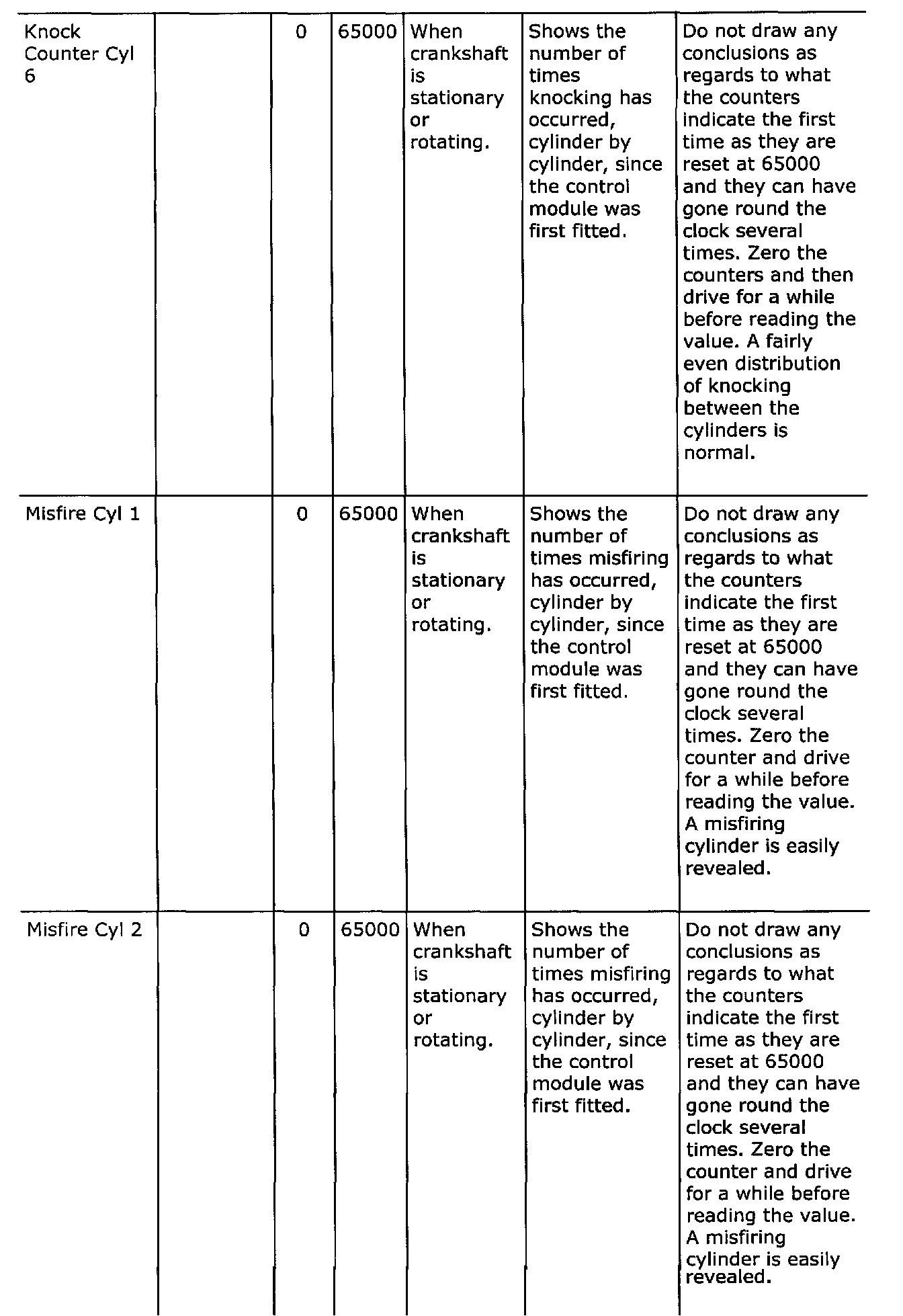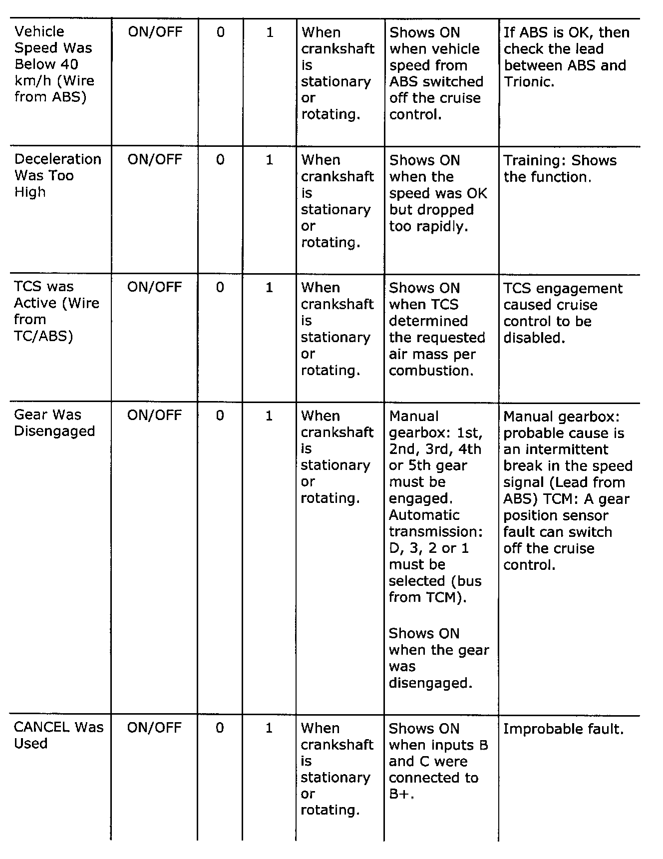 Diagnostic trouble codes