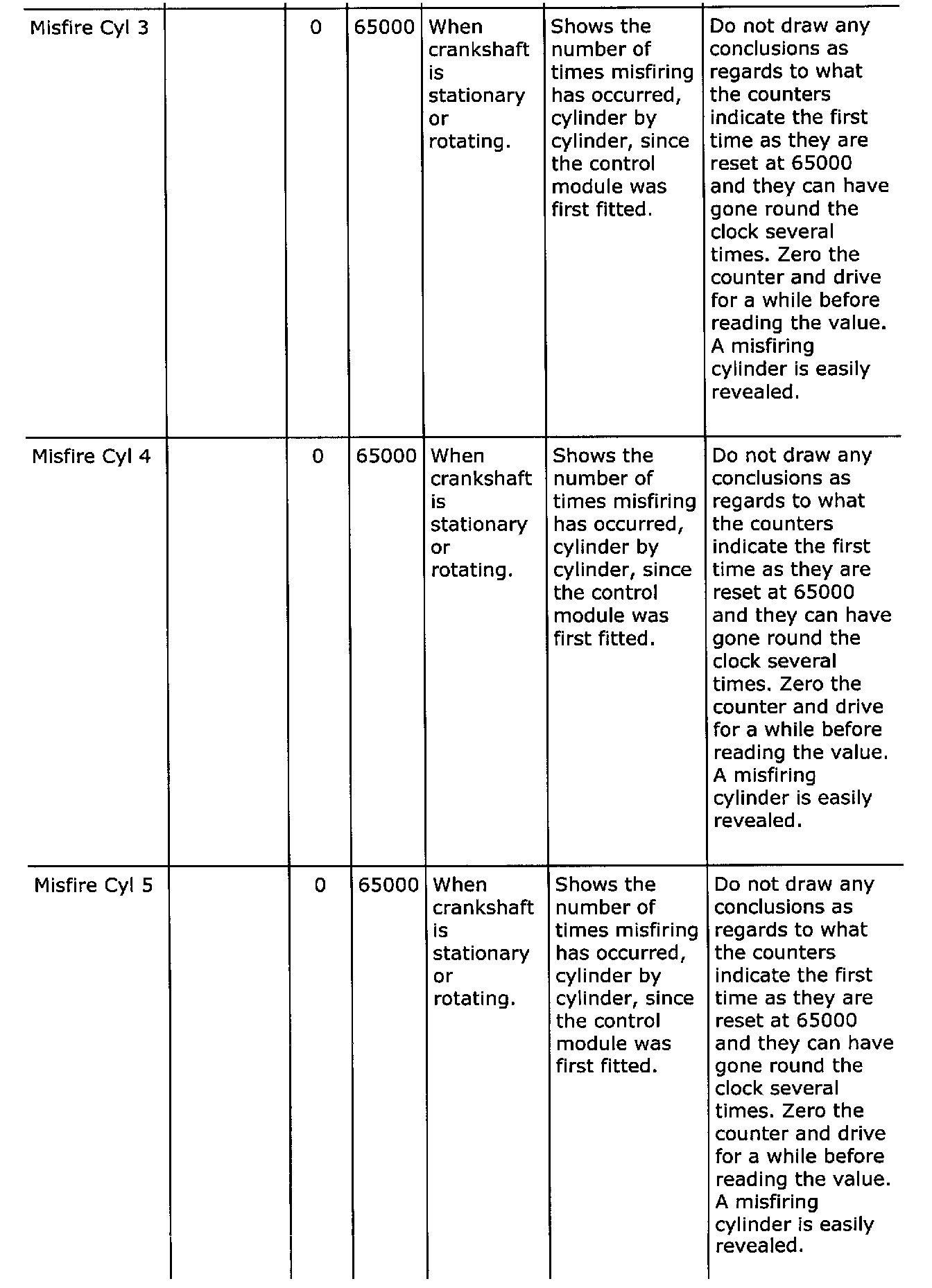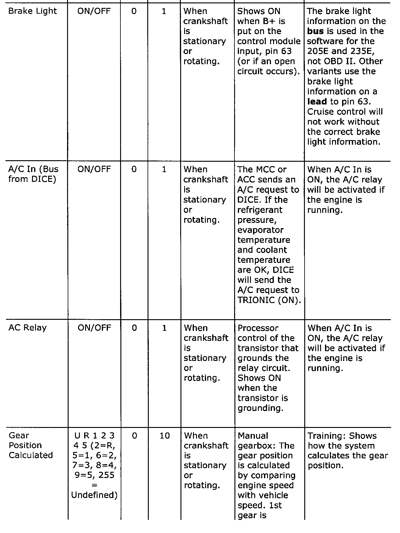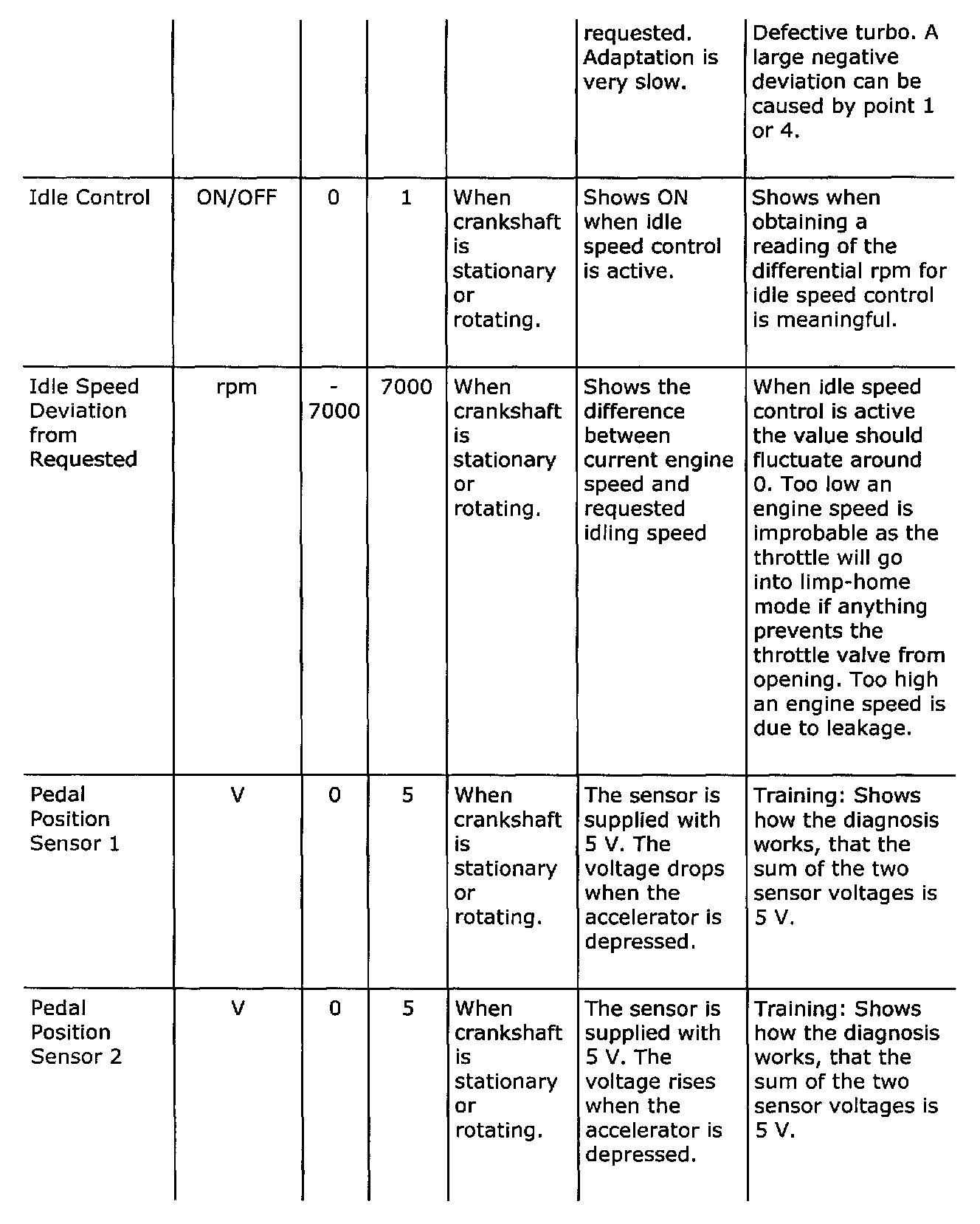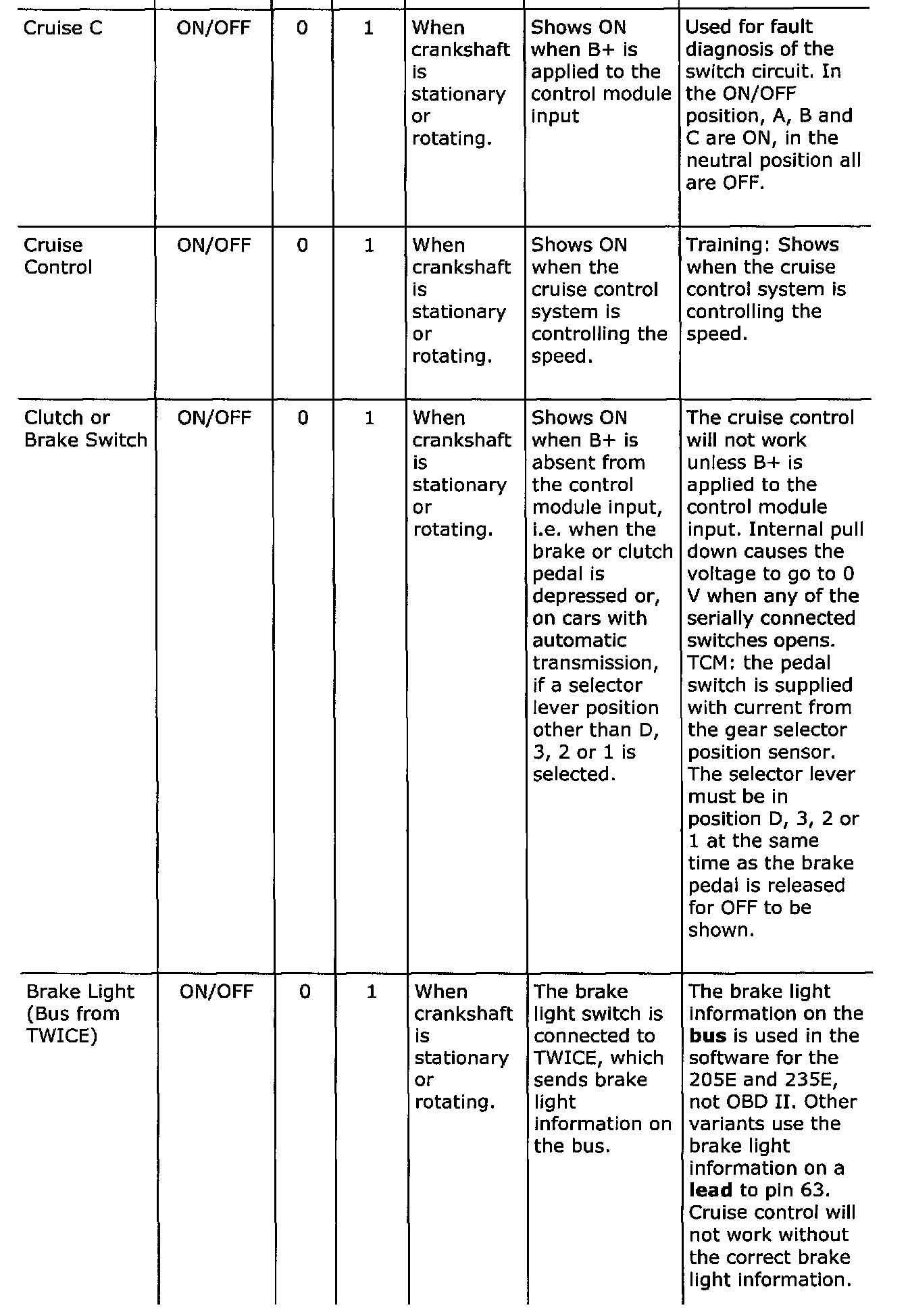 Diagnostic trouble codes