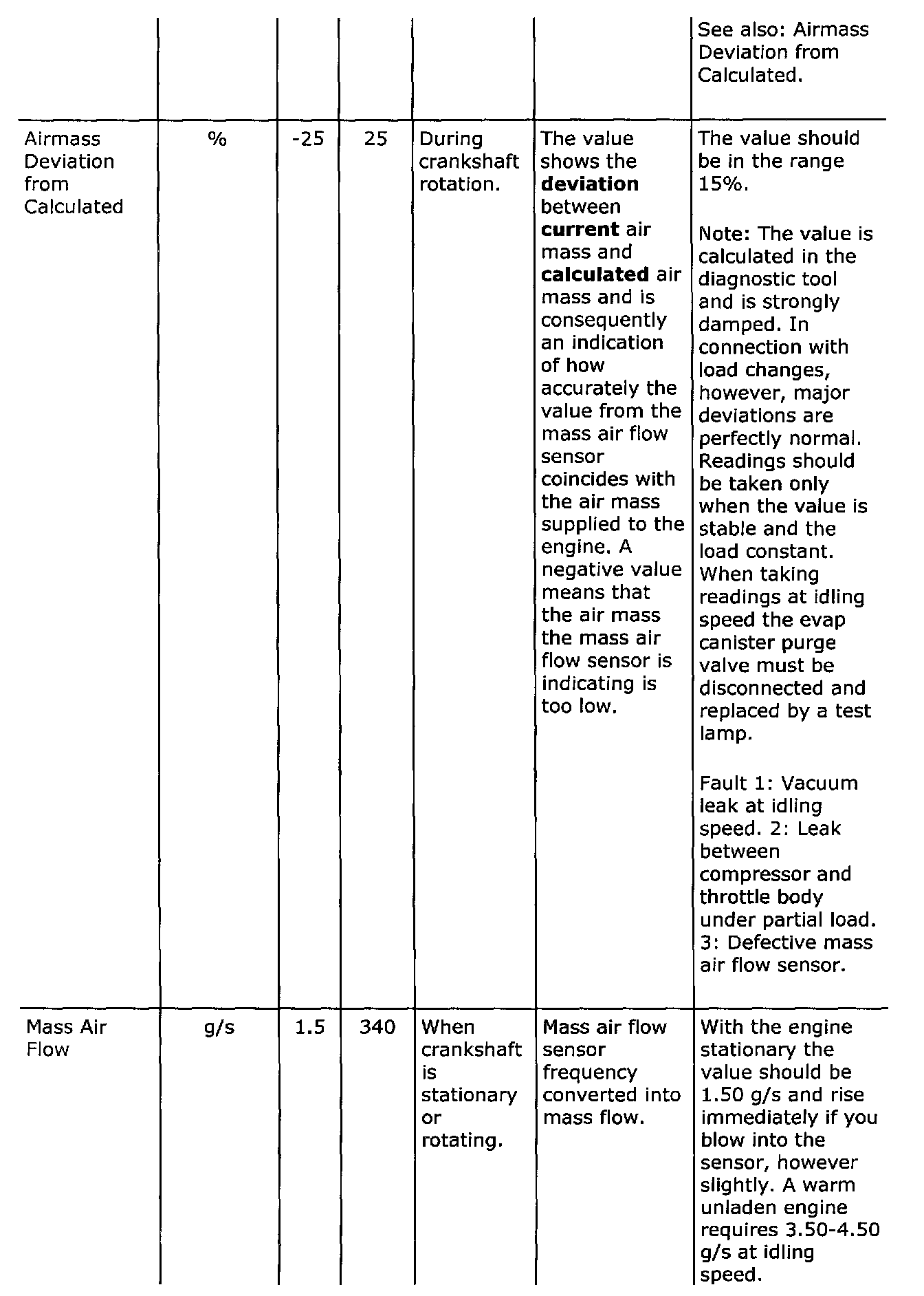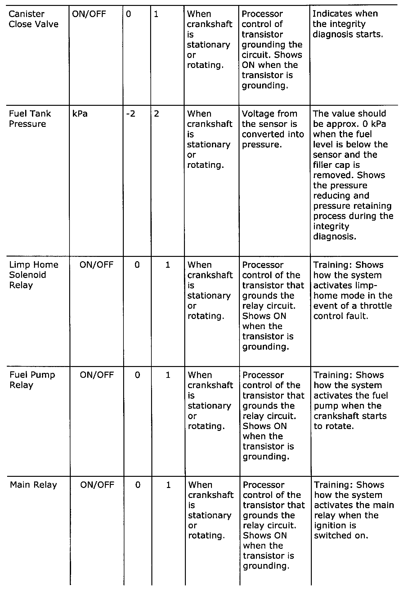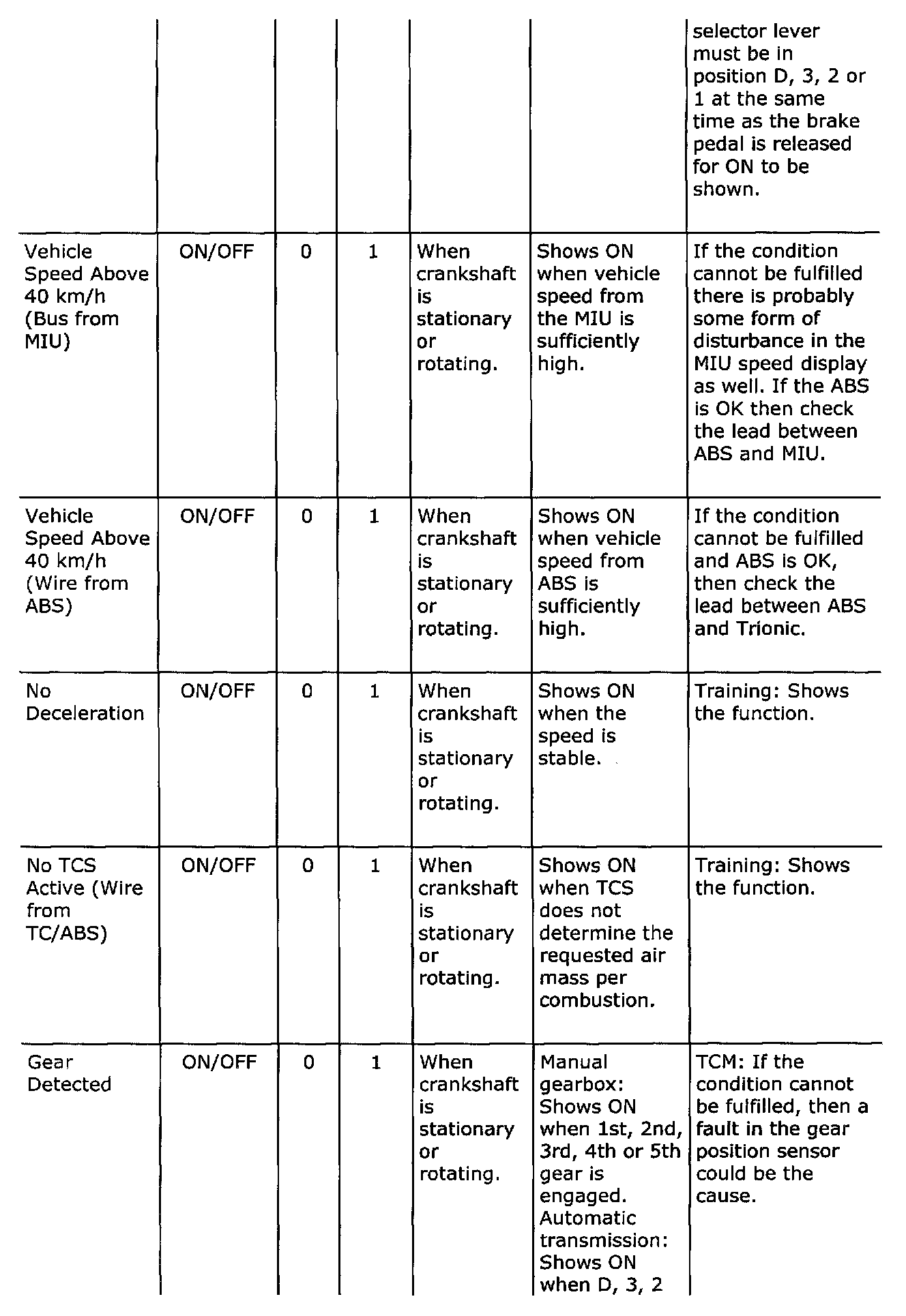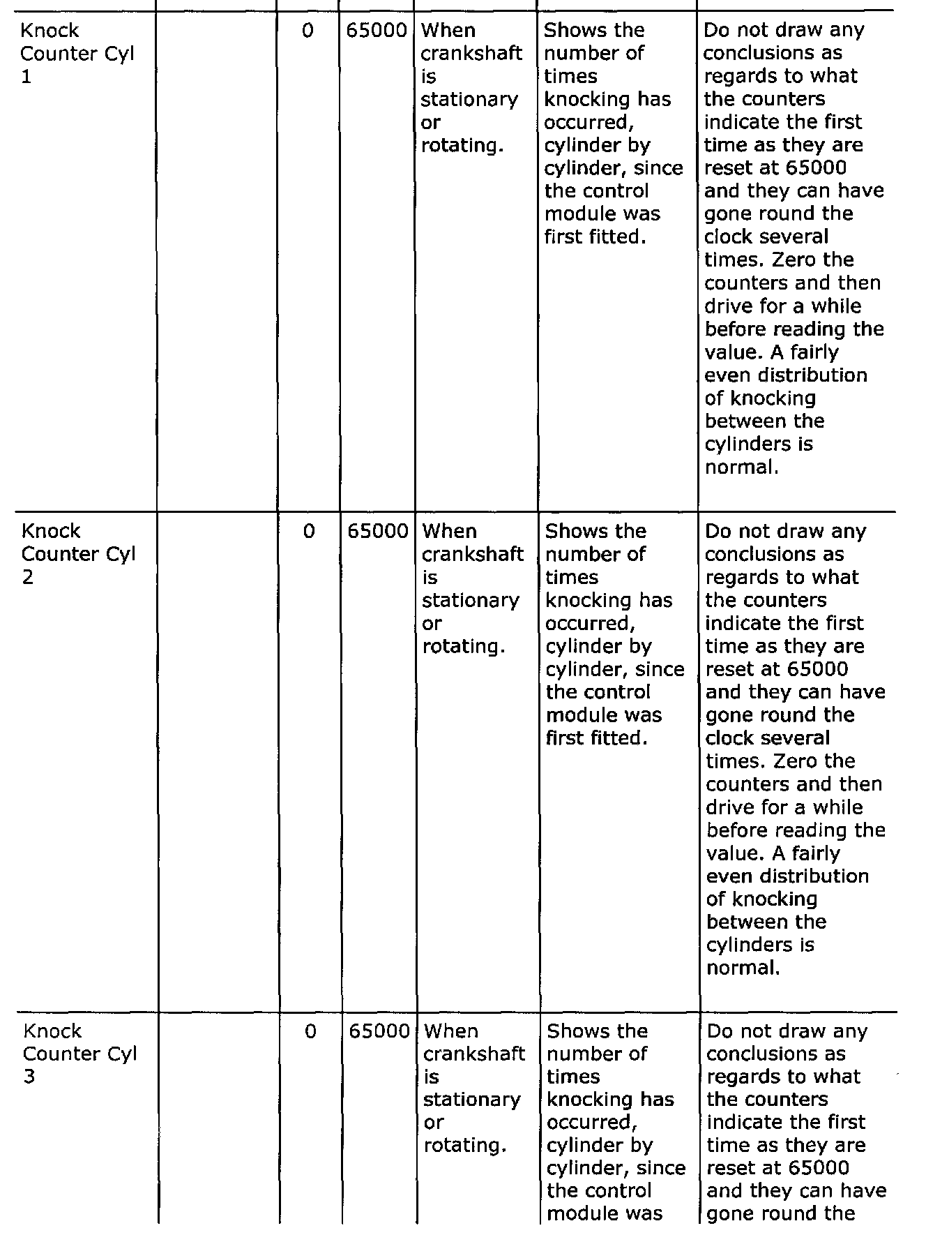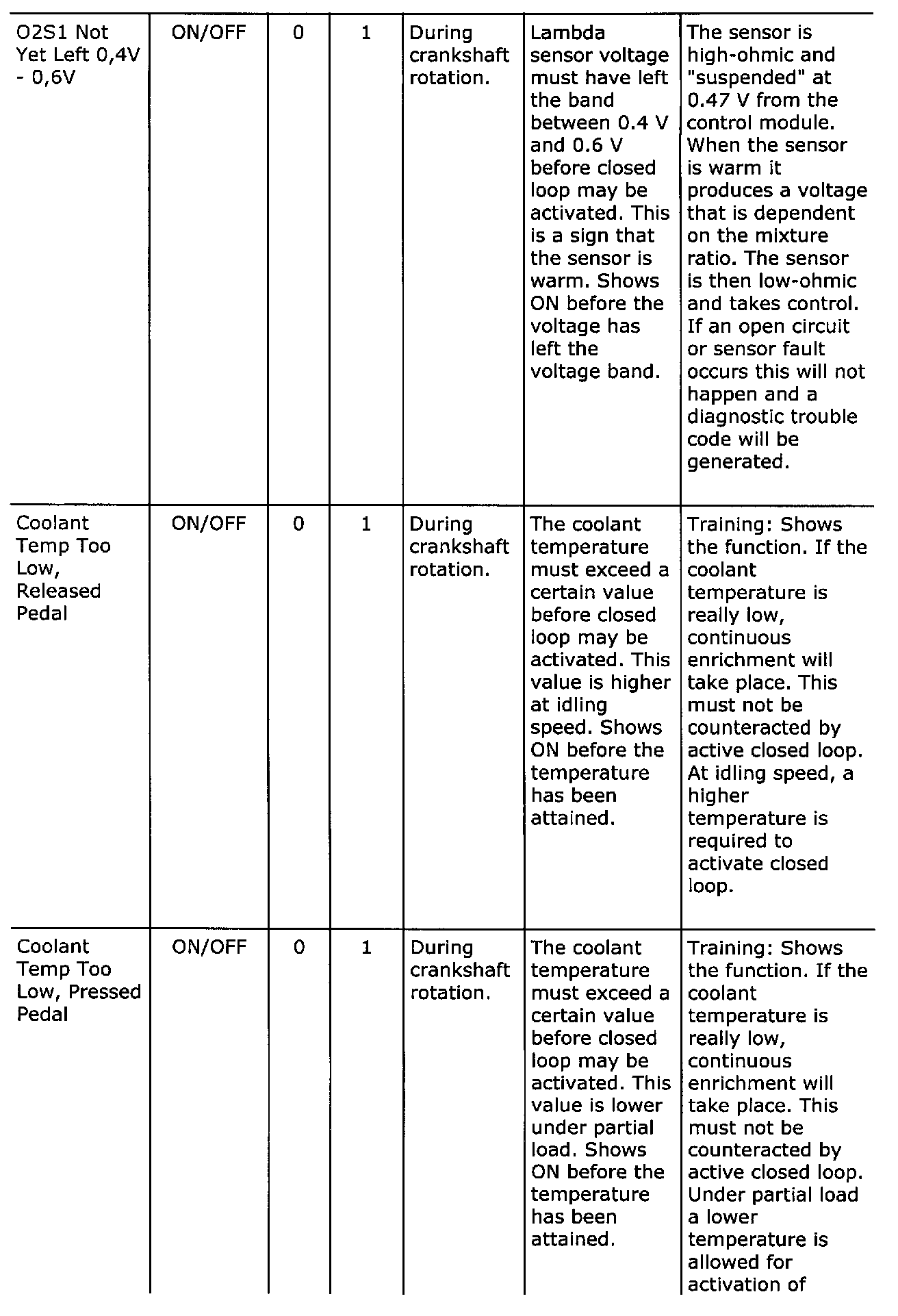 Diagnostic trouble codes