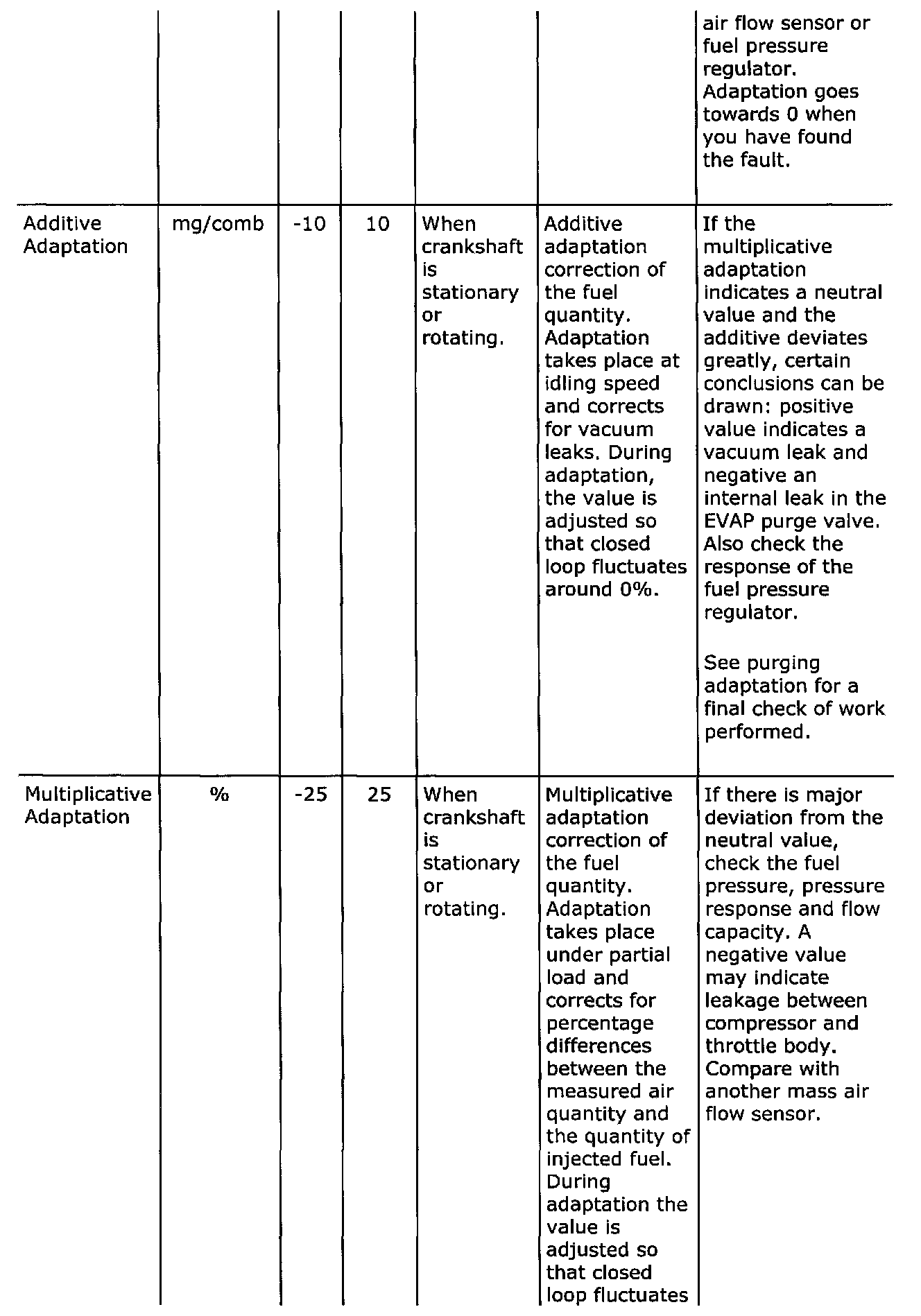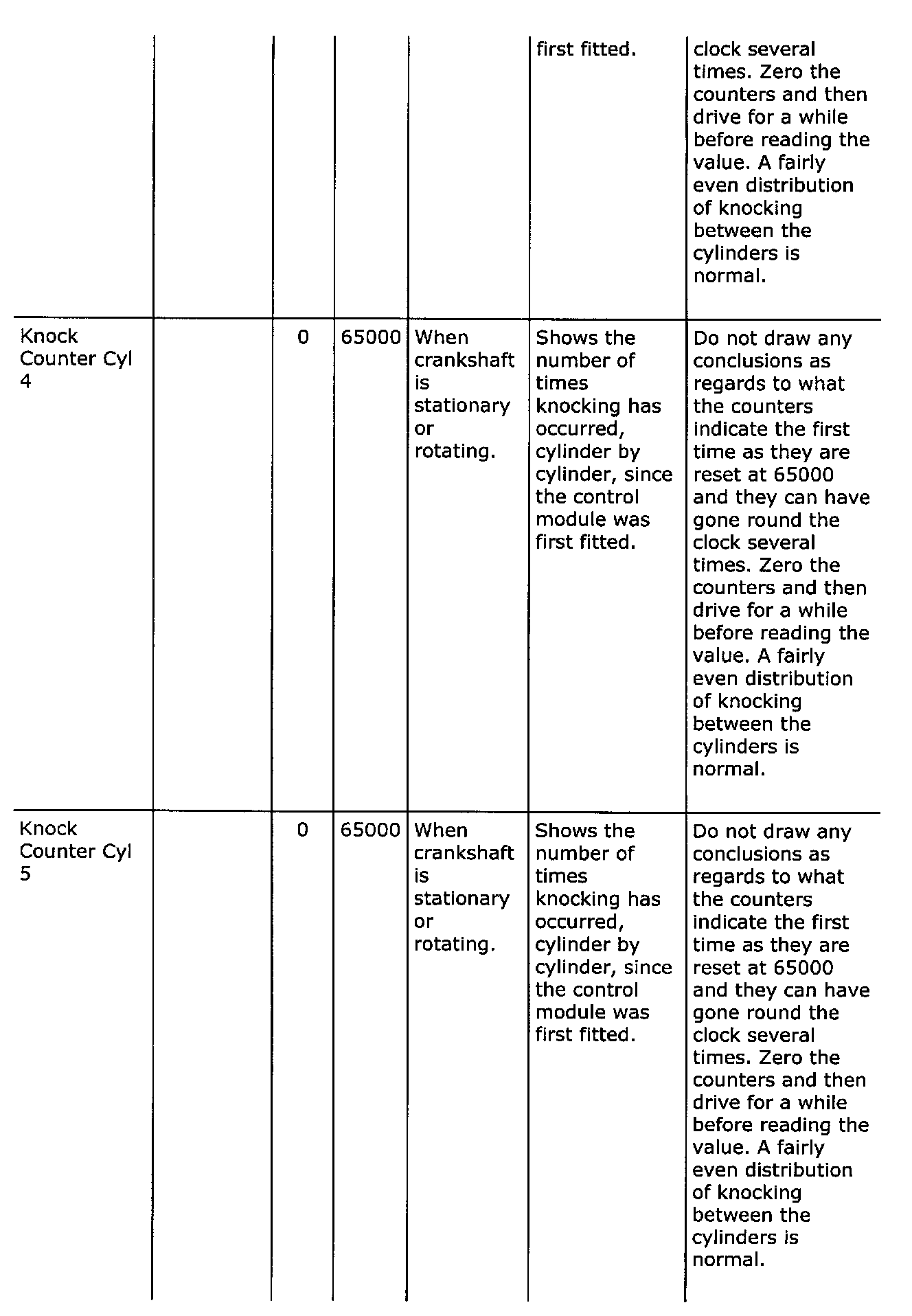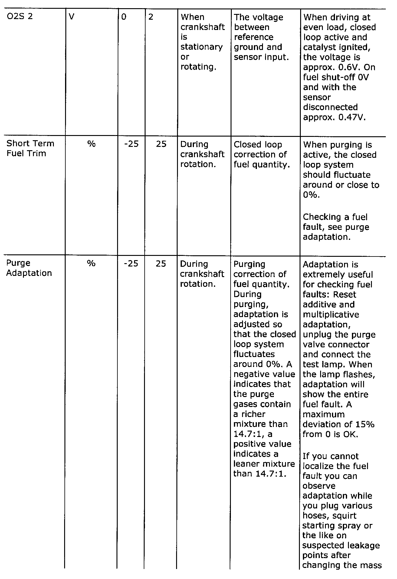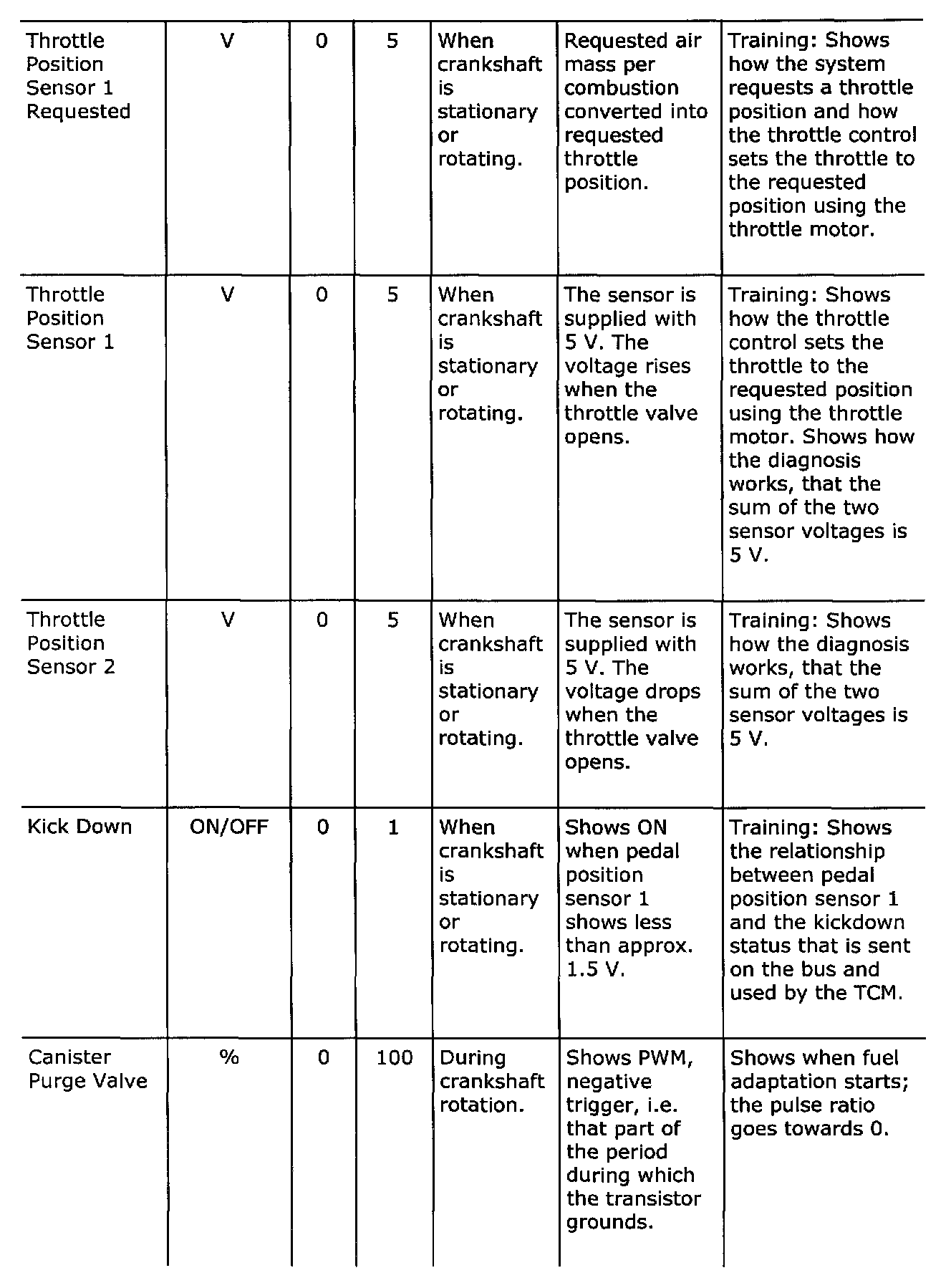 Diagnostic trouble codes