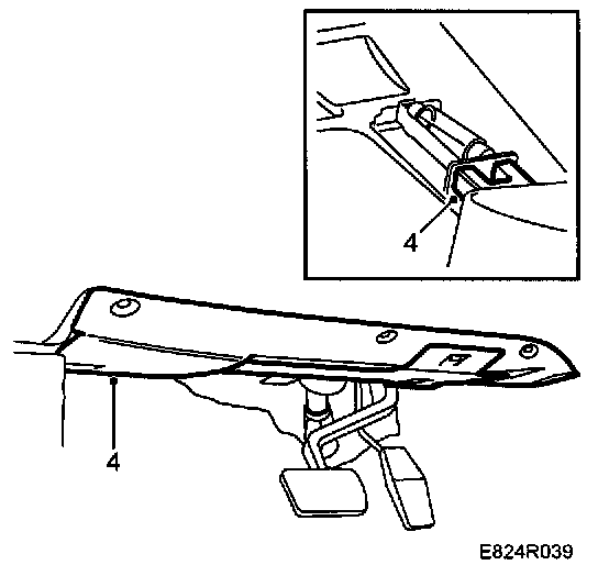 1. Remove the pedal bracket's cover by undoing the 3 screws and clip. Bend the cover down and carefully withdraw it. Mind the leads running to the data link connector and the wiring for the lighting.