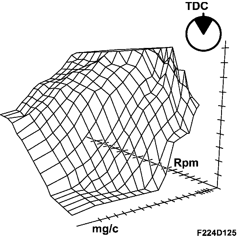 The ignition timing is regulated depending on the engine load and speed (air mass per combustion mg/c). The objective of this ignition regulation is to obtain the correct combustion pressure buildup.