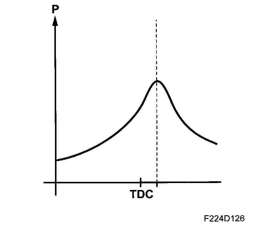 The combustion pressure should normally attain its maximum value at around 16-17 degrees ATDC. In order to achieve this, the fuel/air mixture must ignite slightly earlier. Normal ignition timing at 2000 rpm, light load, can be around 25-28 degrees BTDC so that the igniting flame has time to expand and allow the pressure in the cylinder to reach its maximum at the correct point in time.