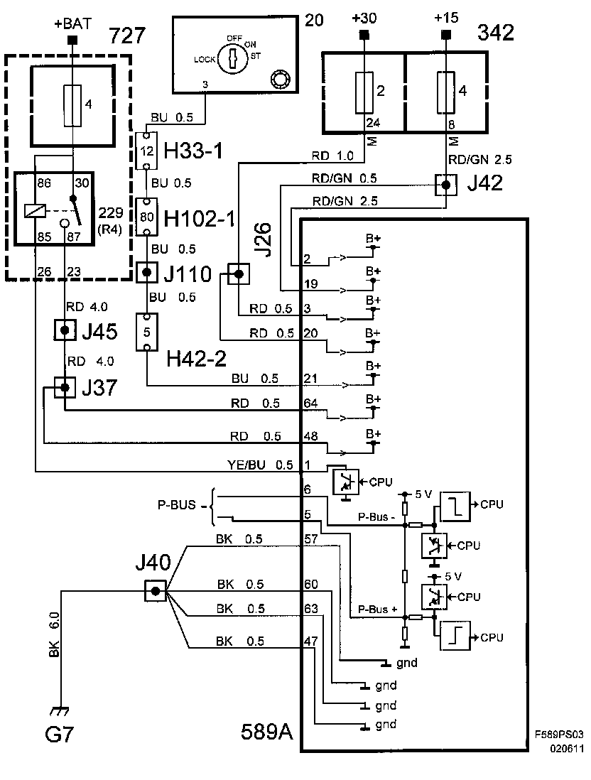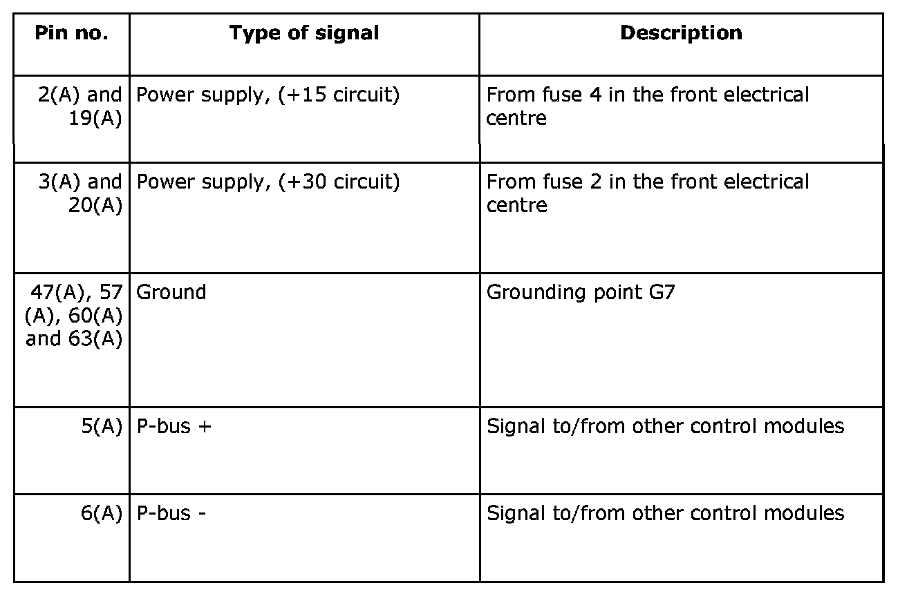 The control module is continuously supplied with +30 current on pin 3(A) and 20(A), and will lose its adapted values and stored trouble codes if it loses power.