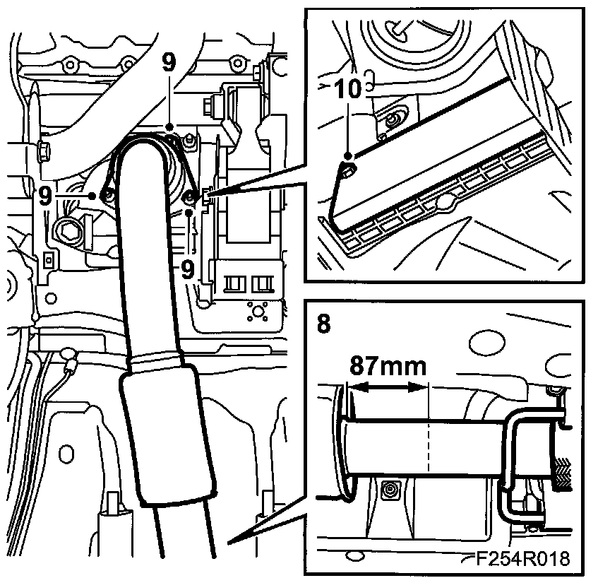 8. Cut the front pipe at the silencer (87 mm from end of silencer). Use 83 95 667 Pipe cutter/exhaust system .