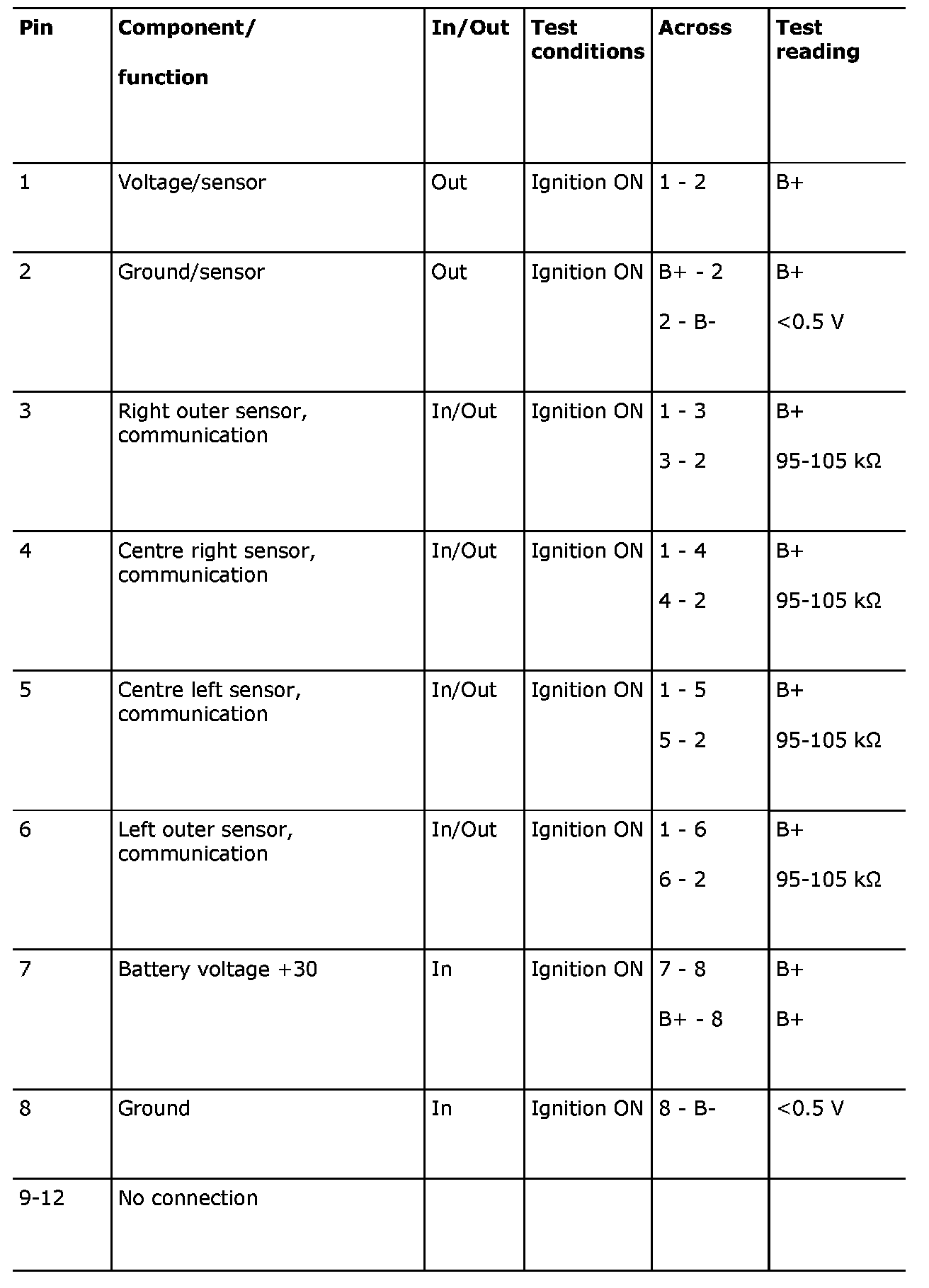 - The specified readings are with the ignition ON unless stated otherwise.