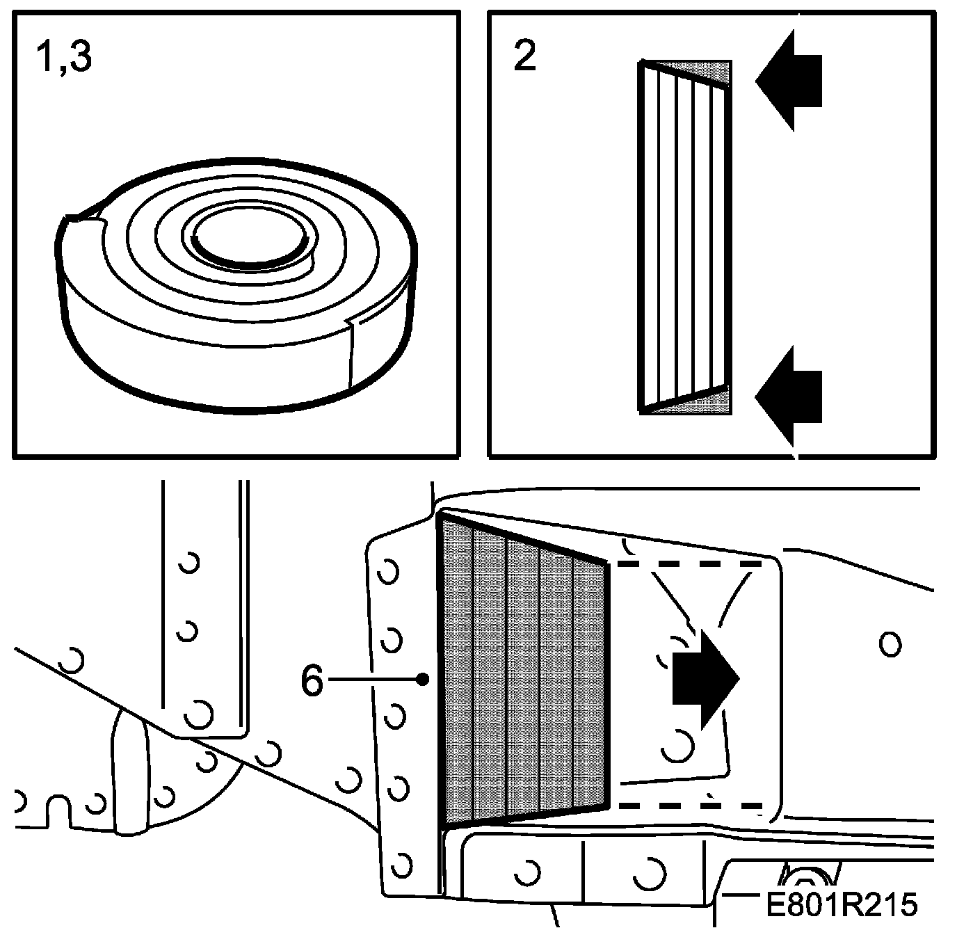 This is a general description that applies in general to all occasions in which sound insulating material is to be added to a cavity. Use foam sealing tape, part no. (16) 8293367 where the original insulating material has been removed.