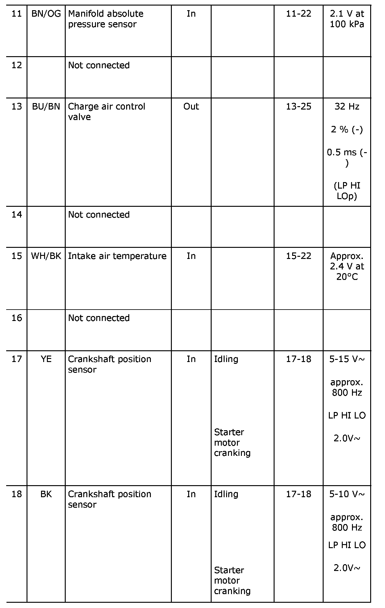Pin No. 11-18:
