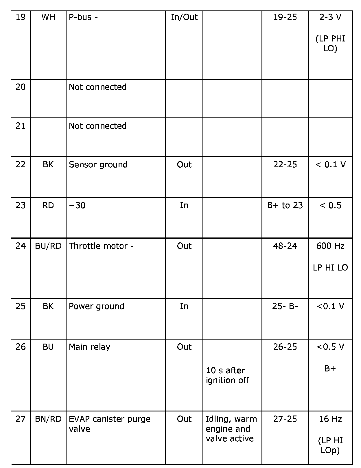 Pin No. 19-27: