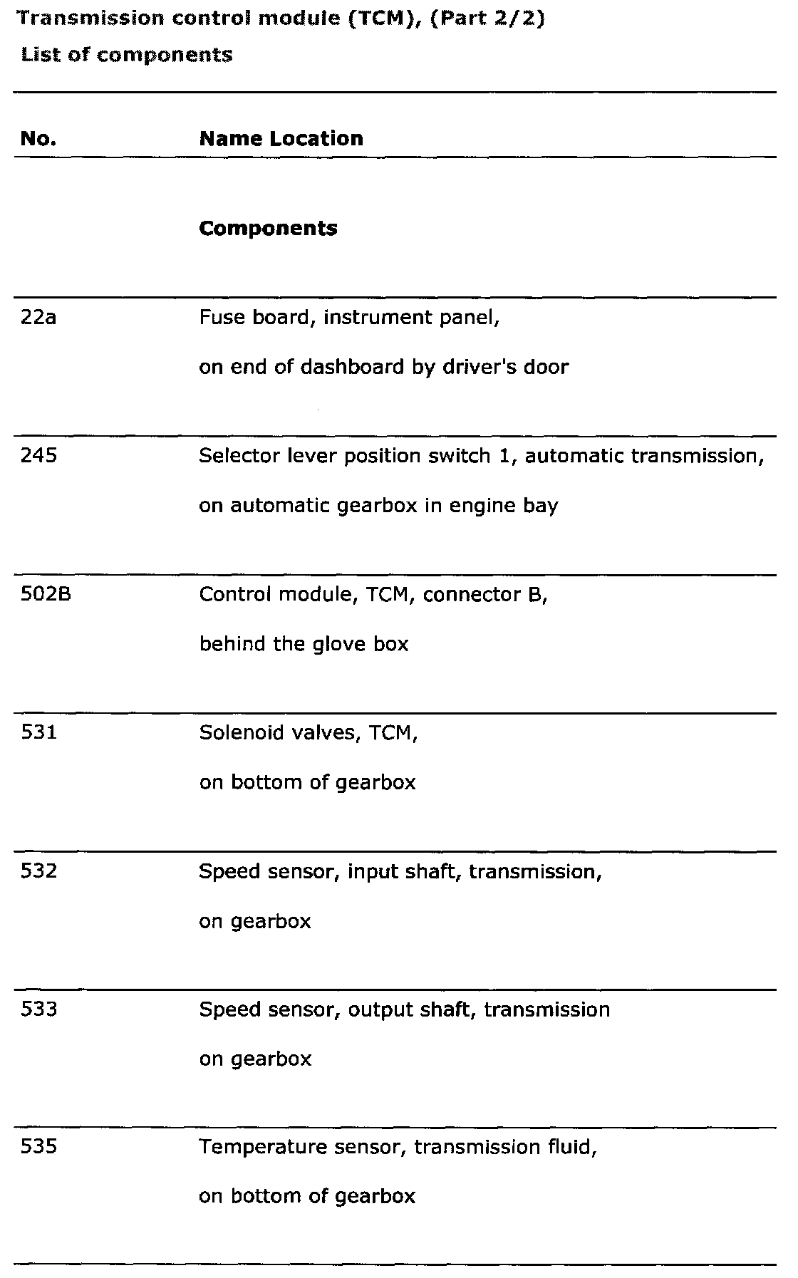 Transmission Control Module (TCM), (Part 2/2)