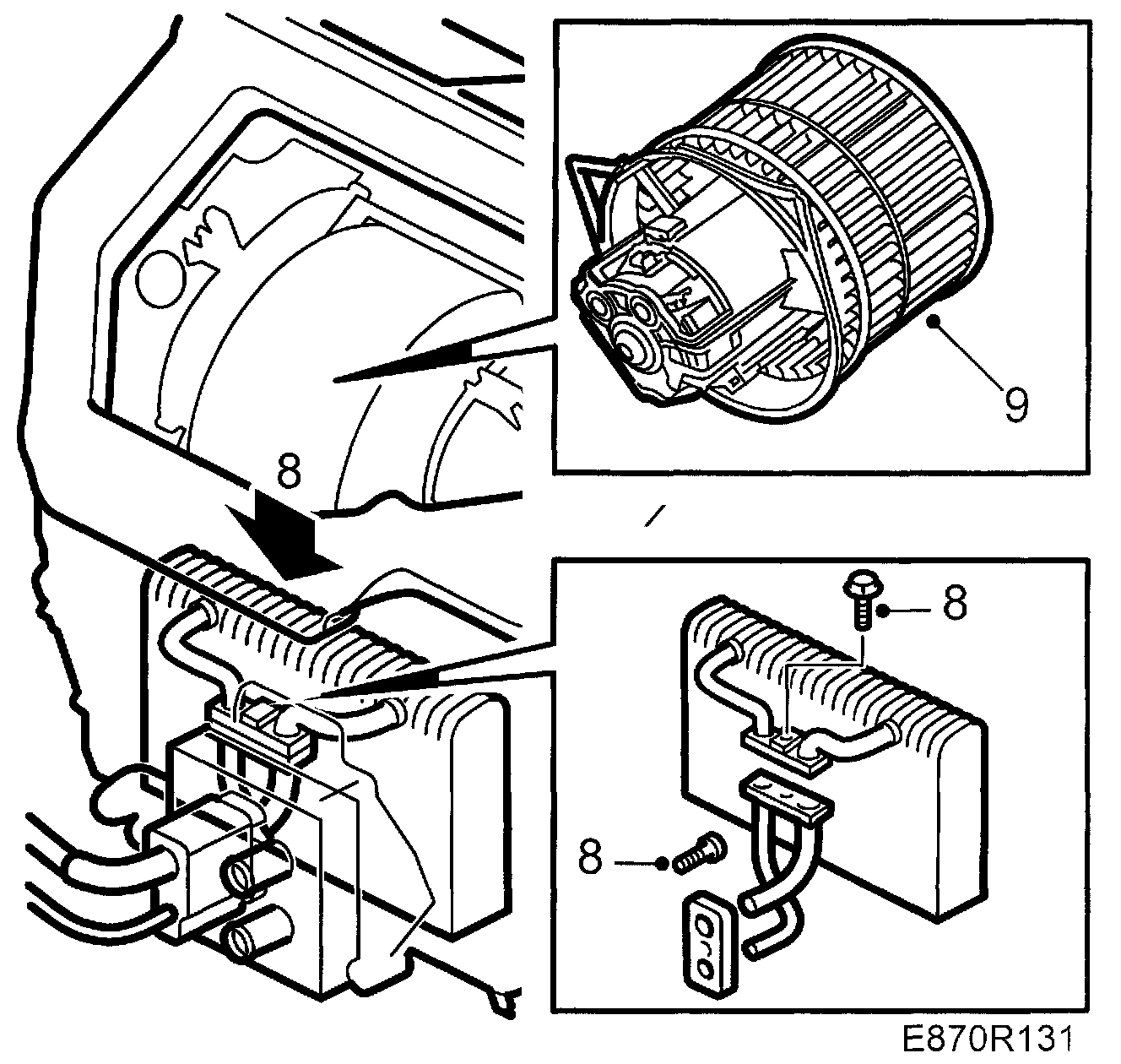 Important: If the pipes between the evaporator and the grommet in the bulkhead are jointless, they must be cut. Therefore, a new evaporator must then be fitted.