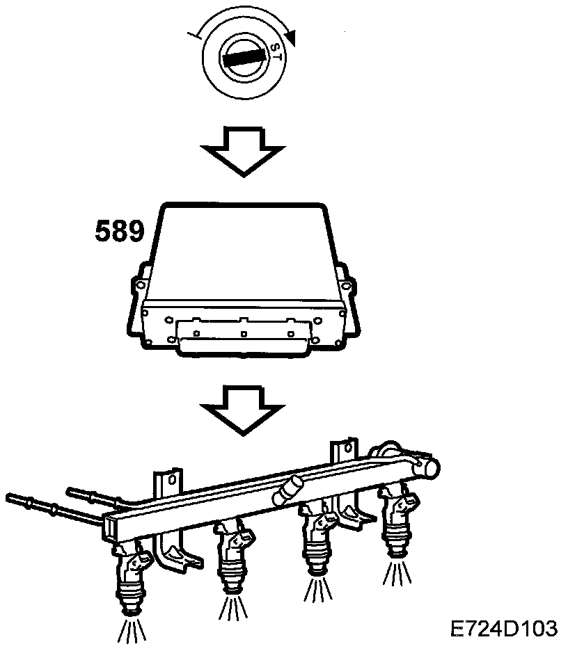 As soon as the control module detects the crankshaft moving, there will be a simultaneous injection with all four injectors. The amount of fuel injected depends on the engine coolant temperature.