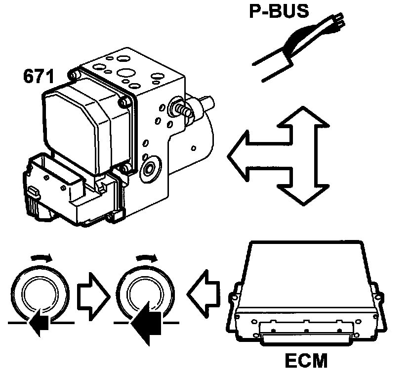 The TC/ABS control module sends the torque request to Trionic via the P-bus. This request can vary between +10 Nm and +400 Nm. When traction control is inactive the request is 400 Nm. Trionic uses this and other information to deliver the correct torque to the drive wheels. Refer also to the description of Trionic.