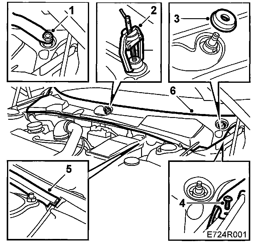 2. Loosen the wiper arms with a puller, special tool (part no. 85 80 144). Remove the nuts and wiper arms.