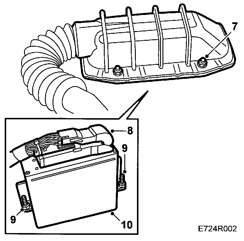 8. Tilt up the cover and unplug the control module multiconnector by releasing the catch on the right.