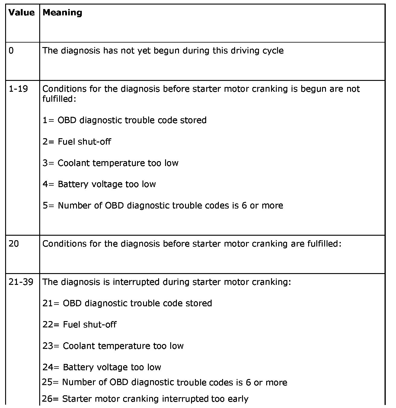 2. If no value is displayed for "Failure Status" before the engine is started