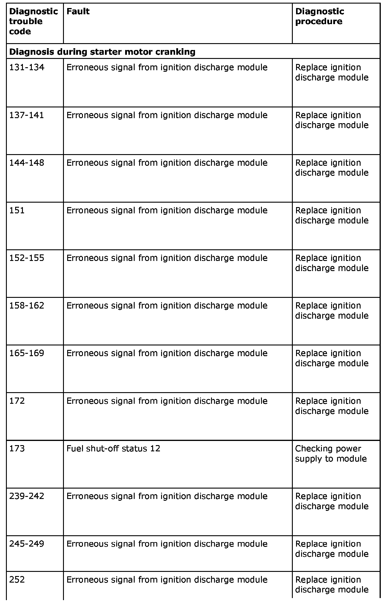 Remedy in accordance with the table above. If the car is under warranty, state "IDM Check Code" on the warranty report.