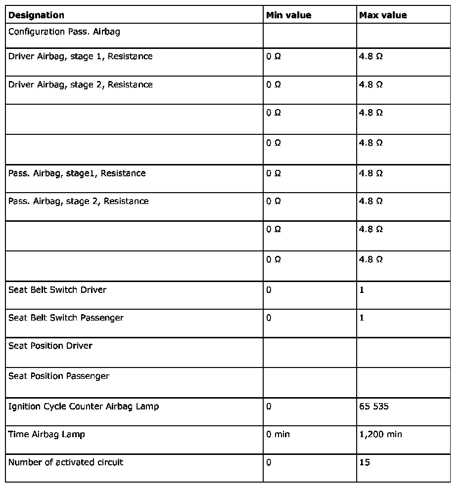 The following table indicates the values for measuring SRS levels. The diagnostic tool should be used for measurement.