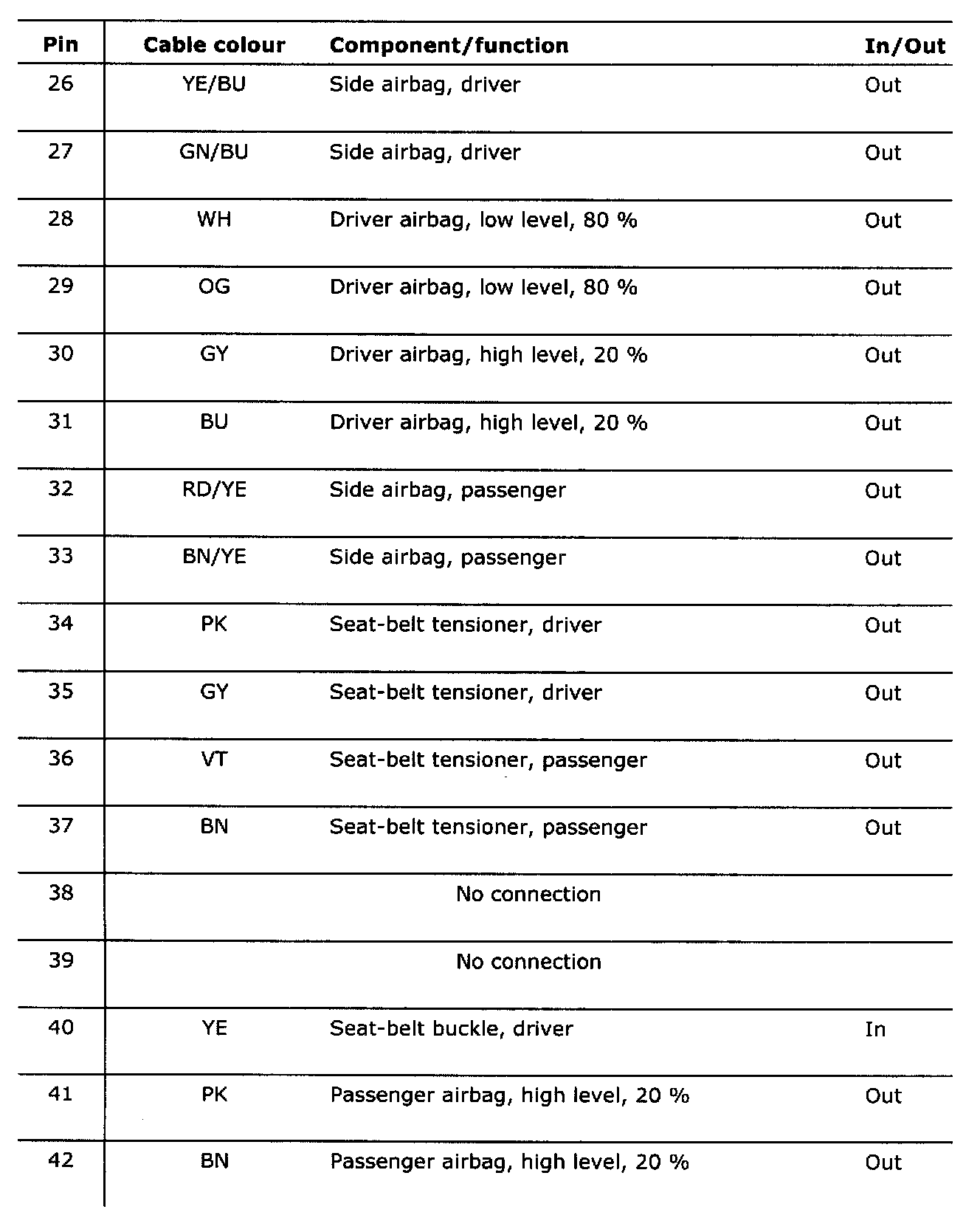 Pin 26 - 42: