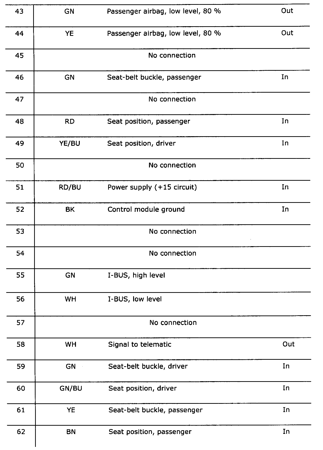Pin 43 - 62: