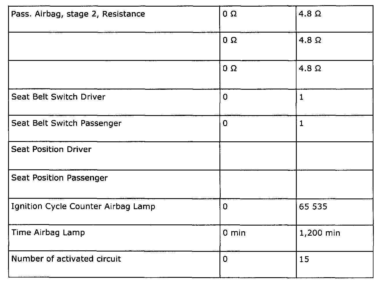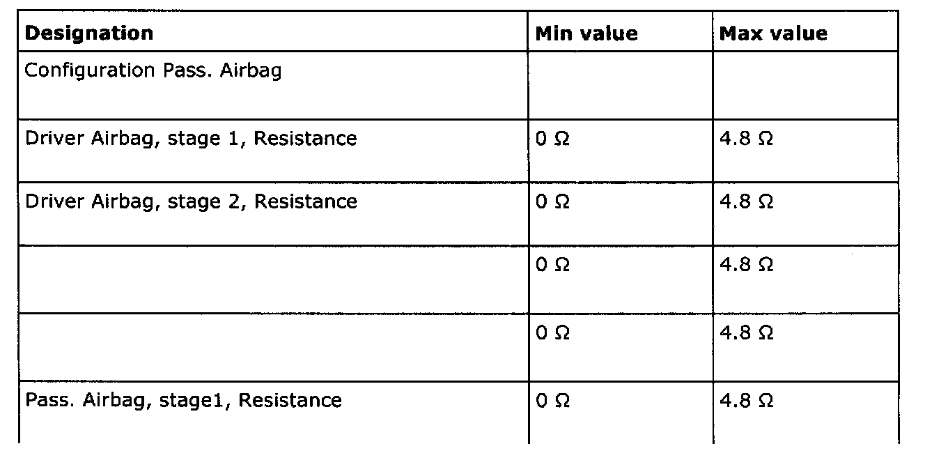 Air Bag Control Module: Specifications