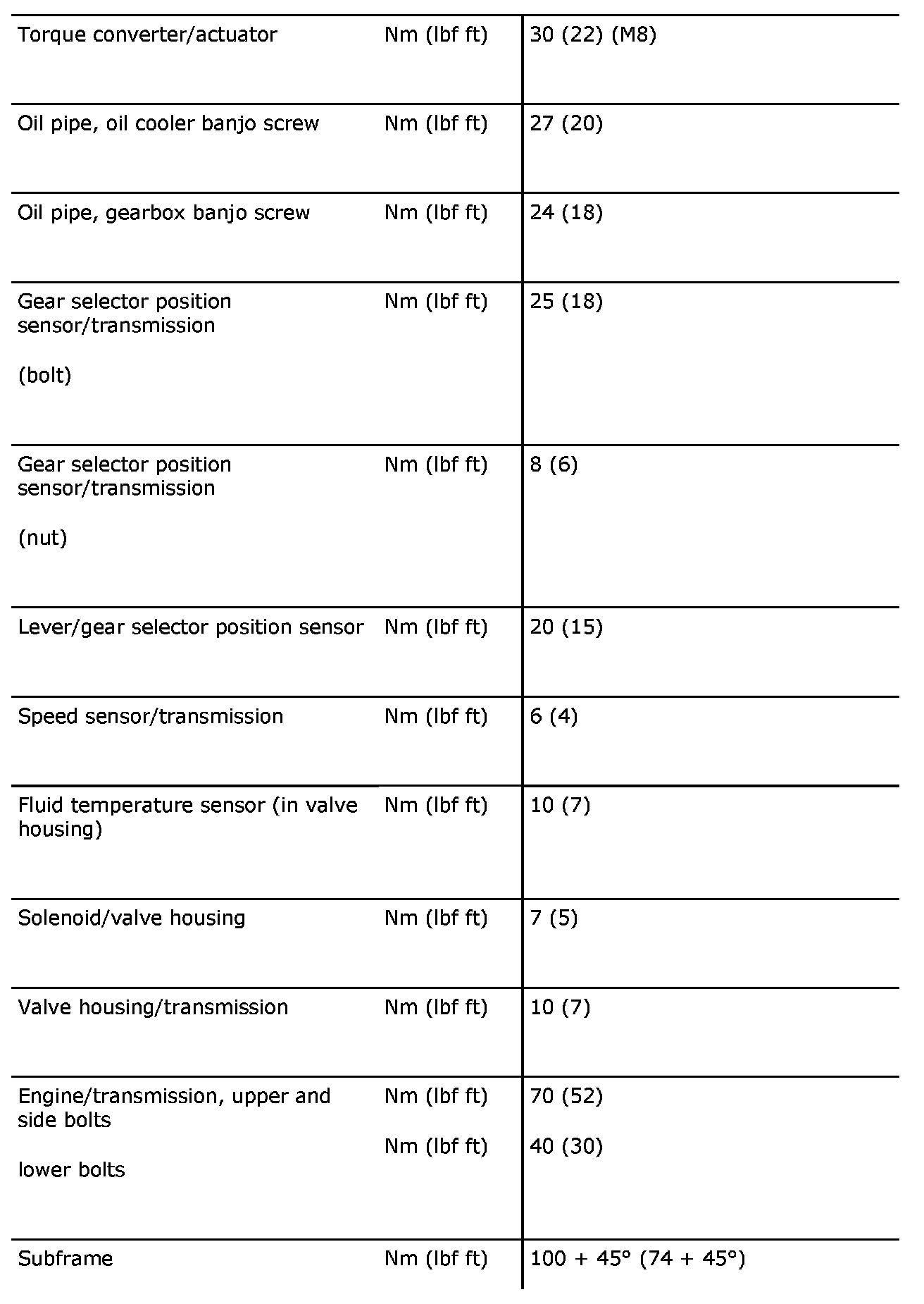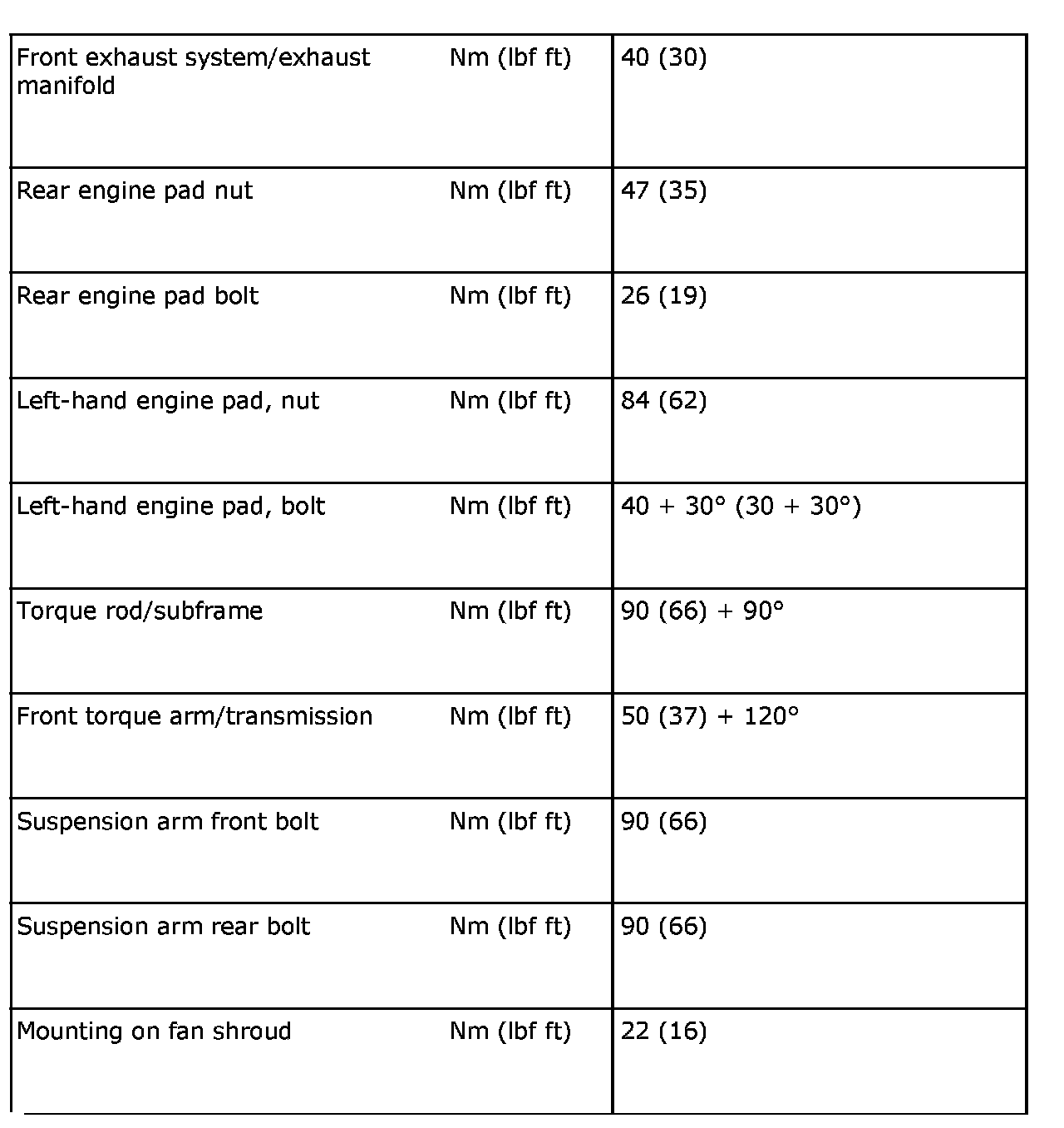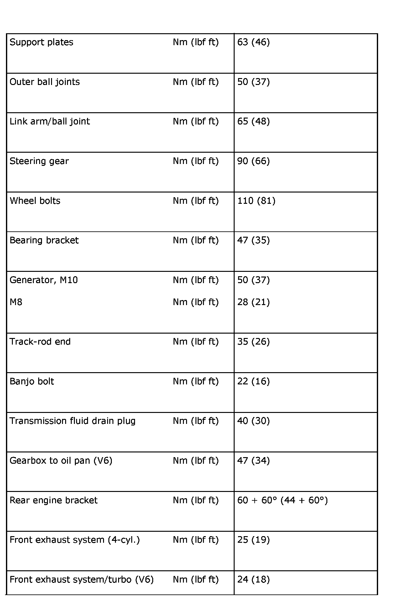 Tightening torques