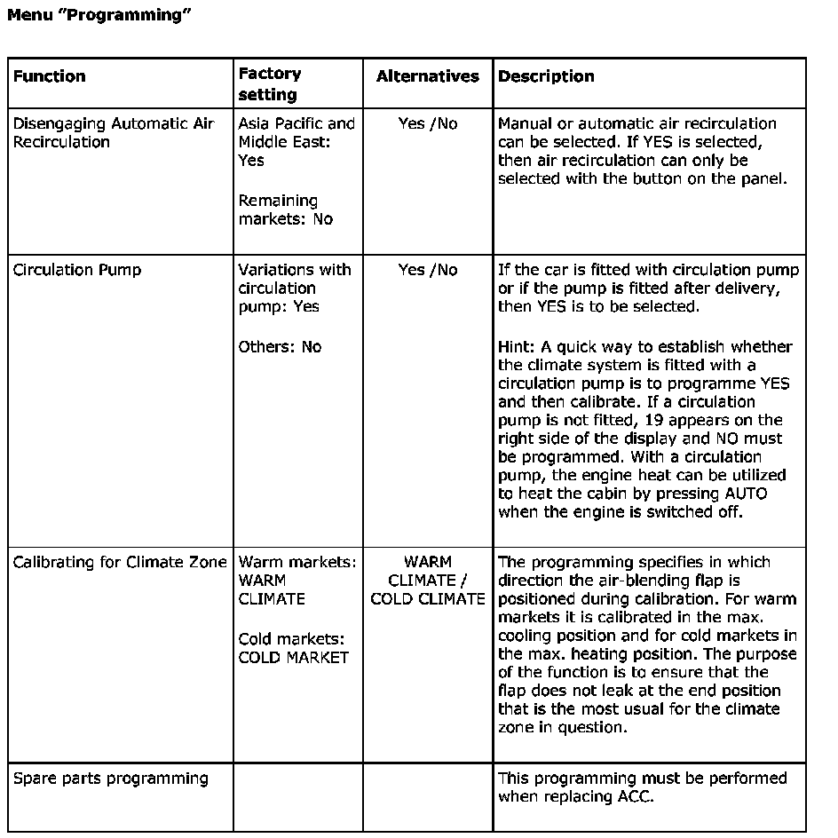 Menu "Programming"