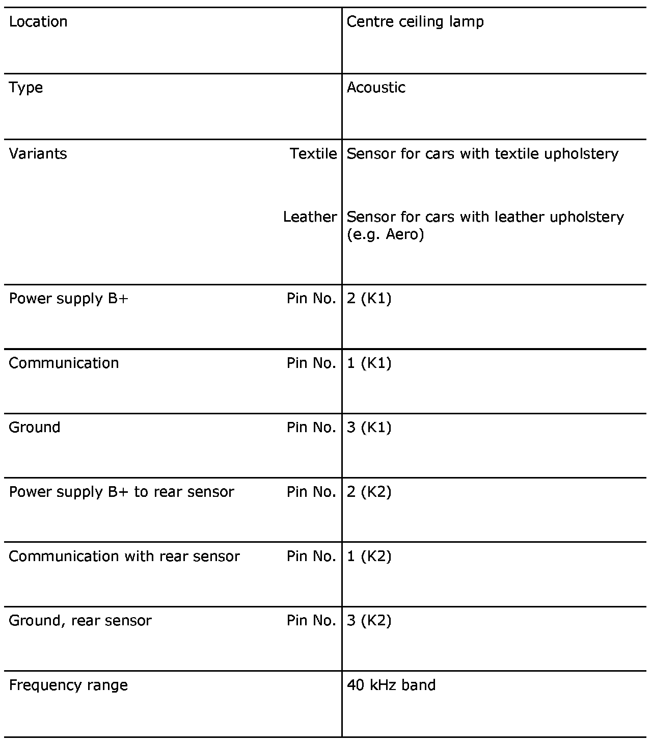 To obtain the correct function and sensitivity of the antitheft alarm, it is important that the correct variant of glass breakage sensor is used.