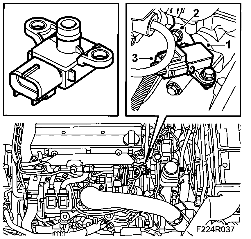 3. Loosen slightly the two bolts for the sensor mounting from the cylinder head and pull out the mounting to access the inner sensor screw.
