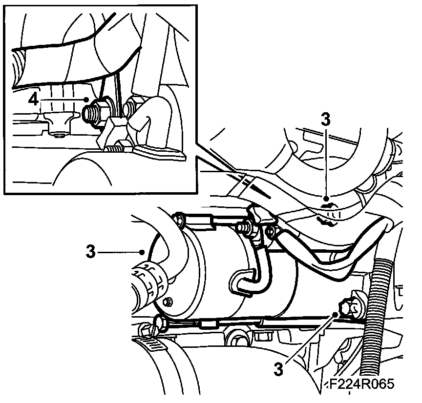 4. Remove the starter motor retaining bolts and move aside the starter motor.