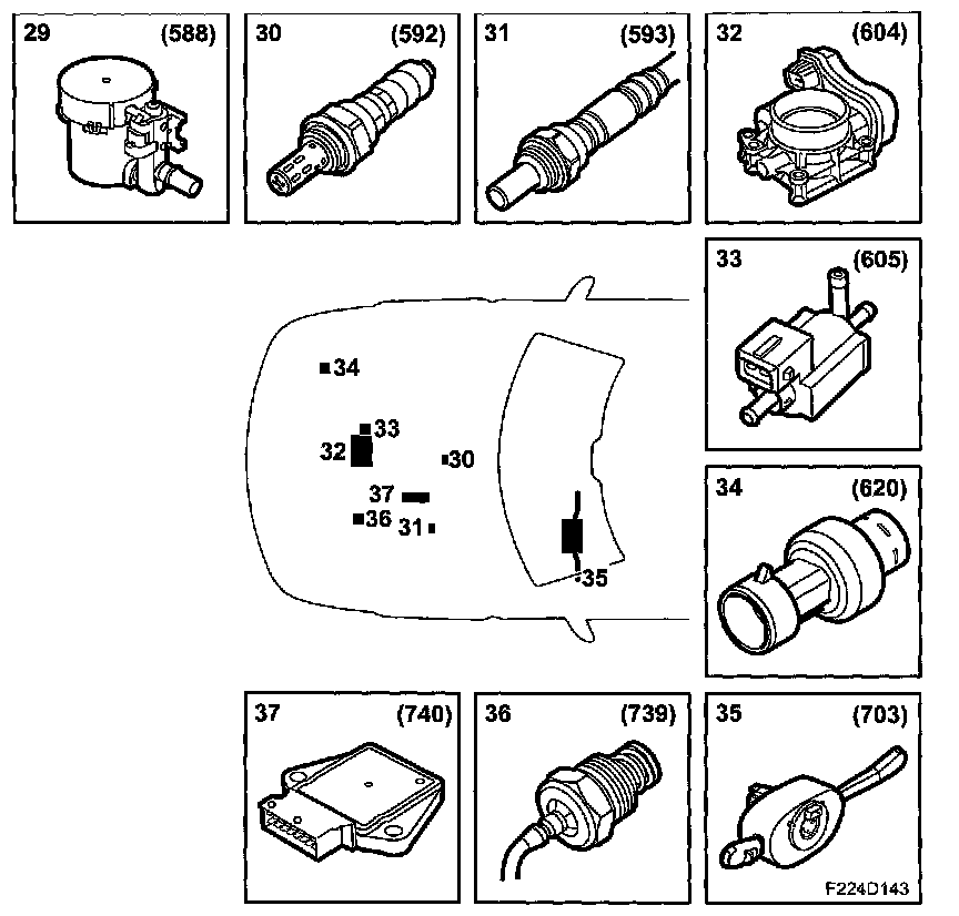 31. Preheated oxygen sensor, rear (593)