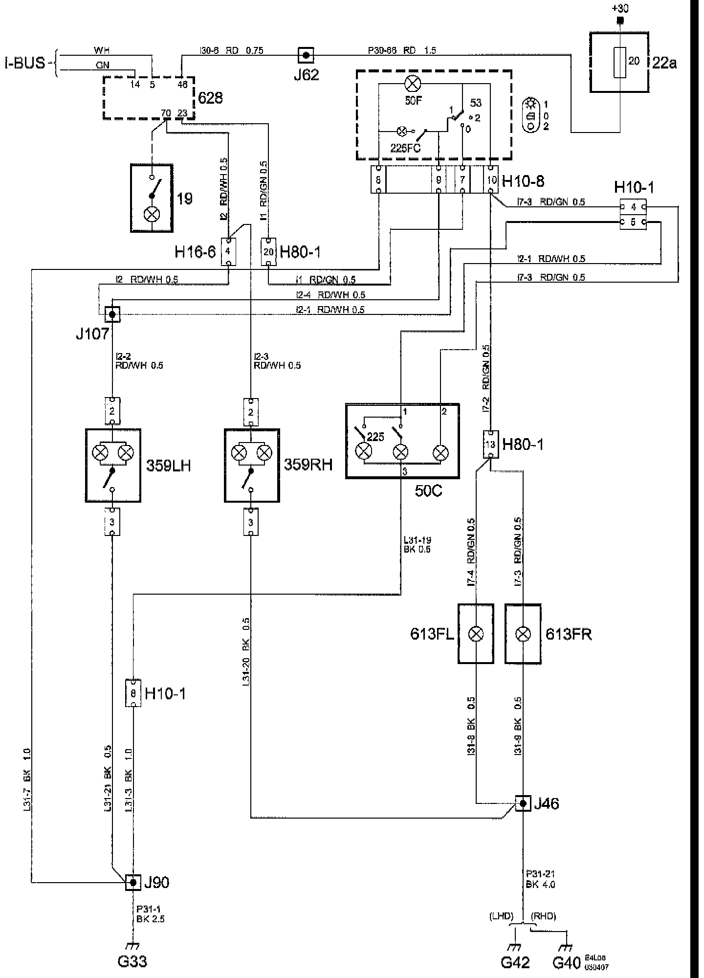 Power Supply Diagrams: The diagrams for the power supplies that may be feeding this system (+30, +15, +54, +X and +B) can be found at Power and Ground Distribution diagrams Diagrams