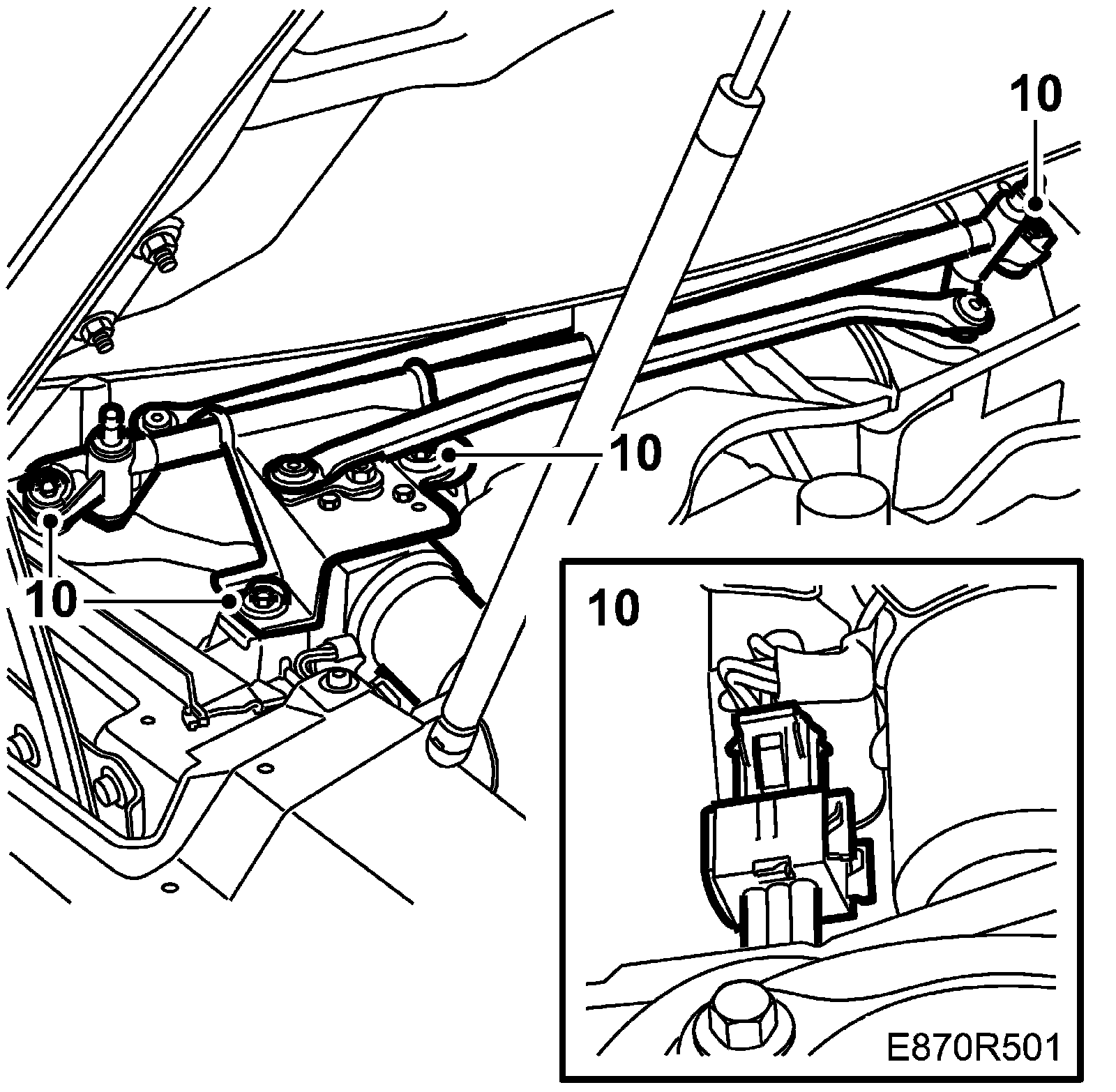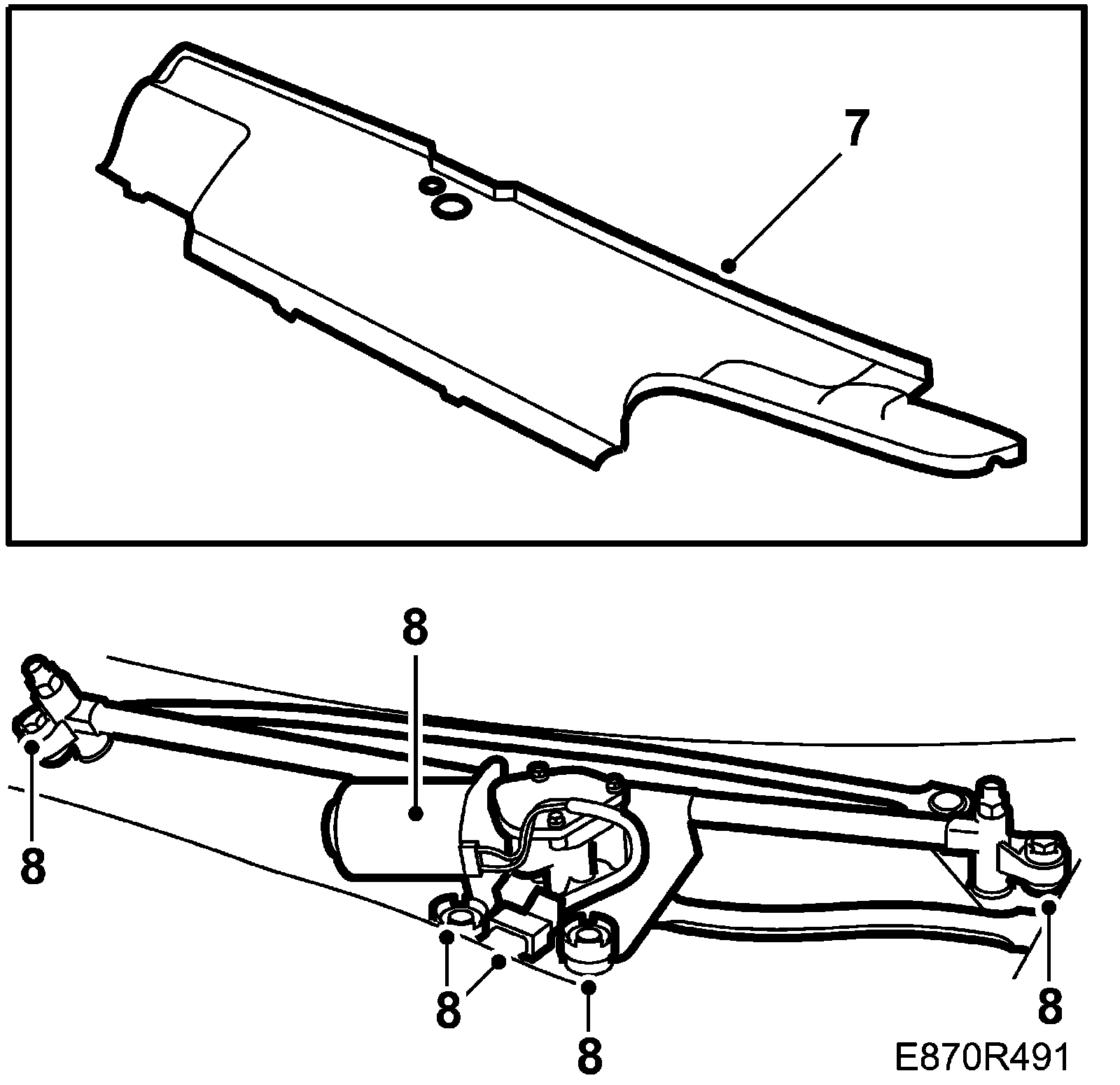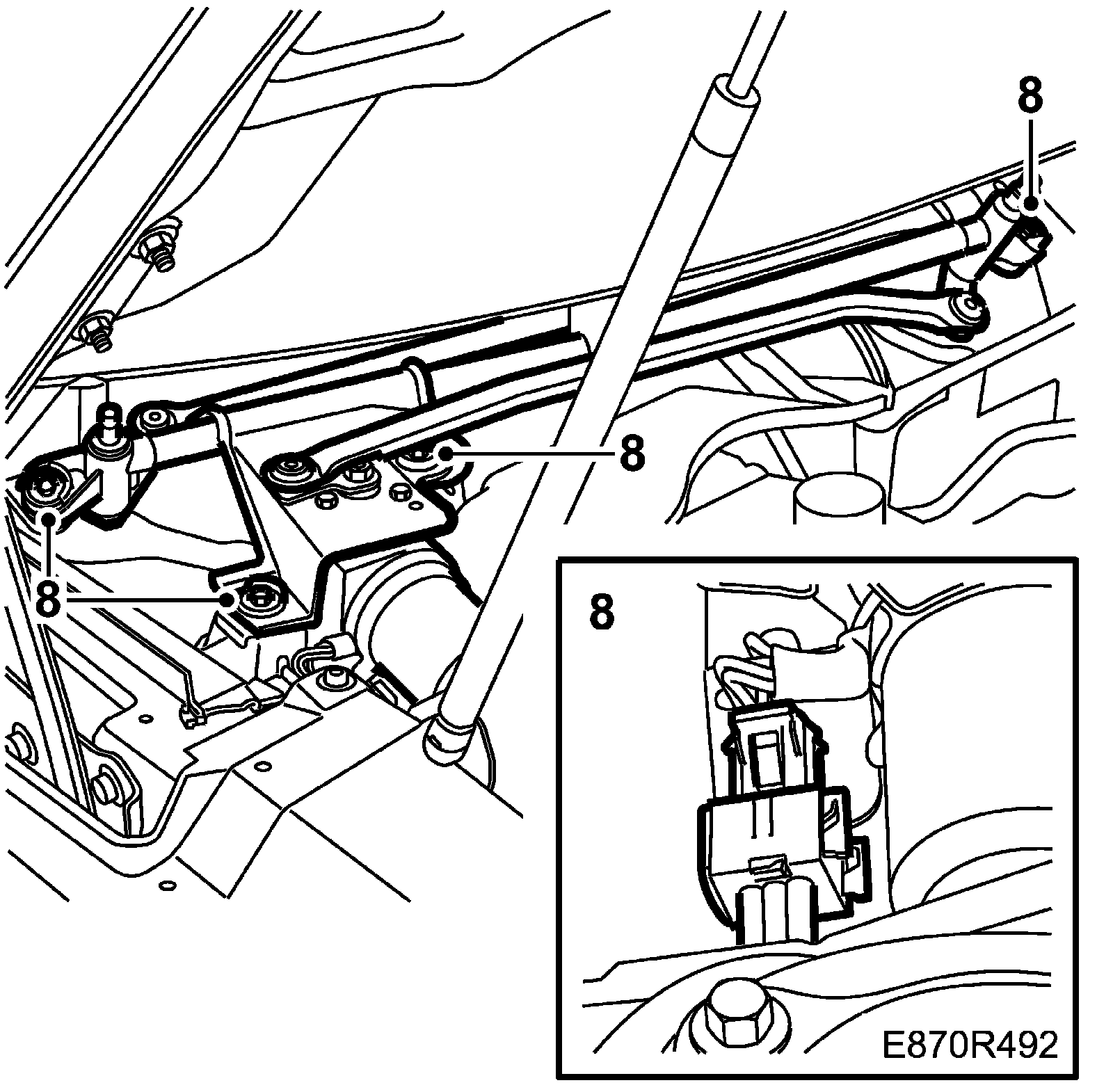 8. Remove the wiper unit and unplug the connector, 4 bolts.