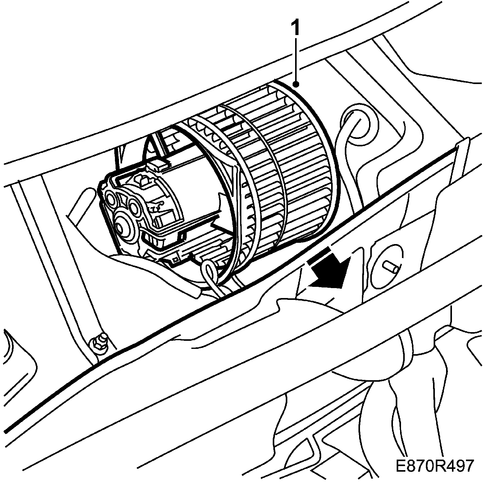 4. LHD: Insert the ventilation fan connector and plug it in. Fit the wiring harness onto the cover over the ventilation fan.