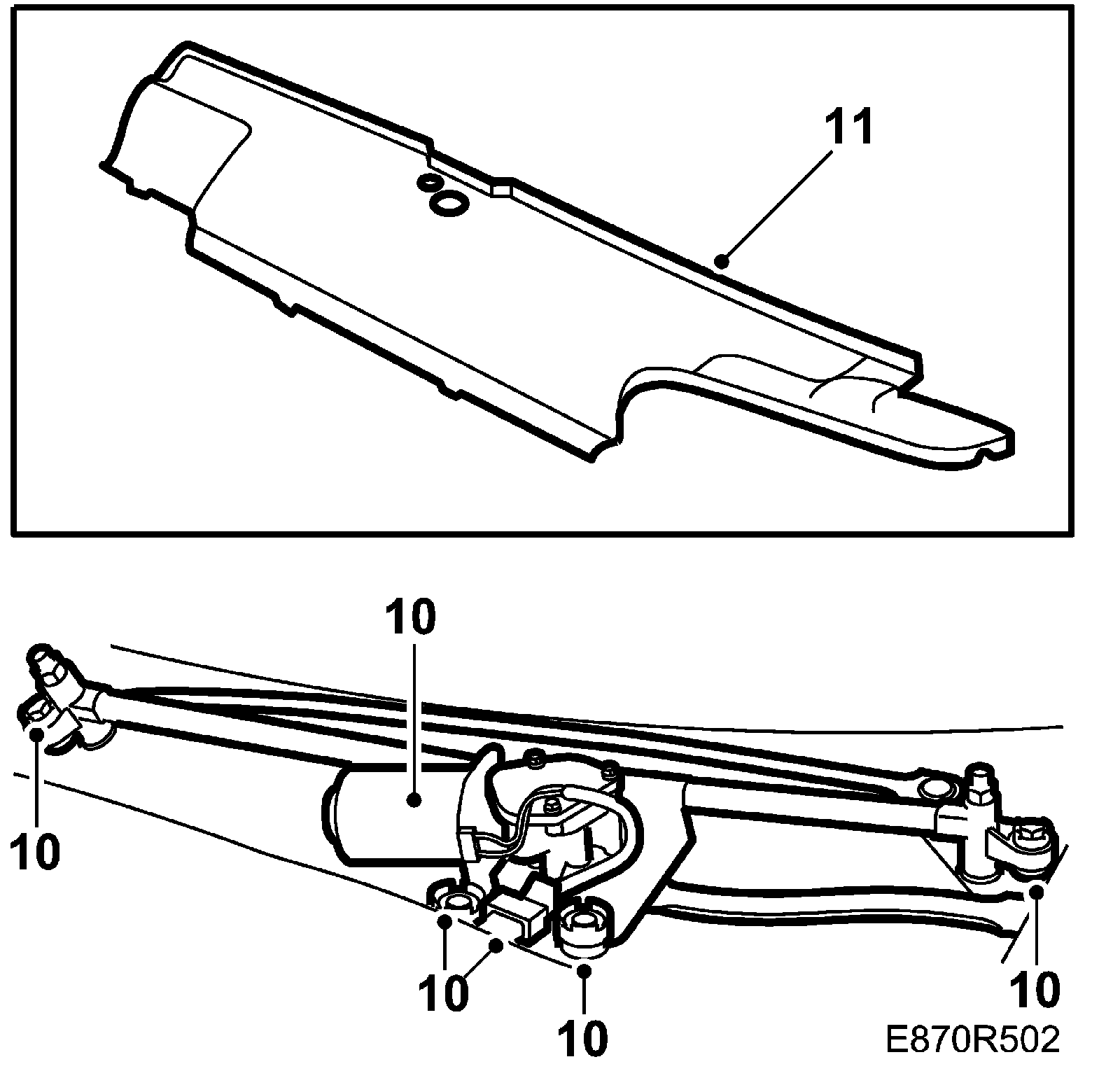 11. Remove the wiper arm bracket over the ventilation fan, 3 bolts.