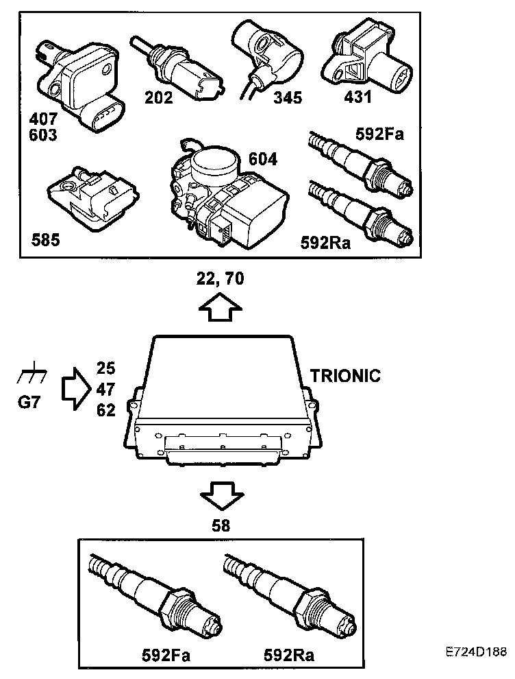 ^ The engine will not start if the sensor ground is missing and the throttle will go into limp-home mode. As the two sensor ground outputs are coupled together internally in the throttle body, there will be no symptoms if a break should occur in only one of them.