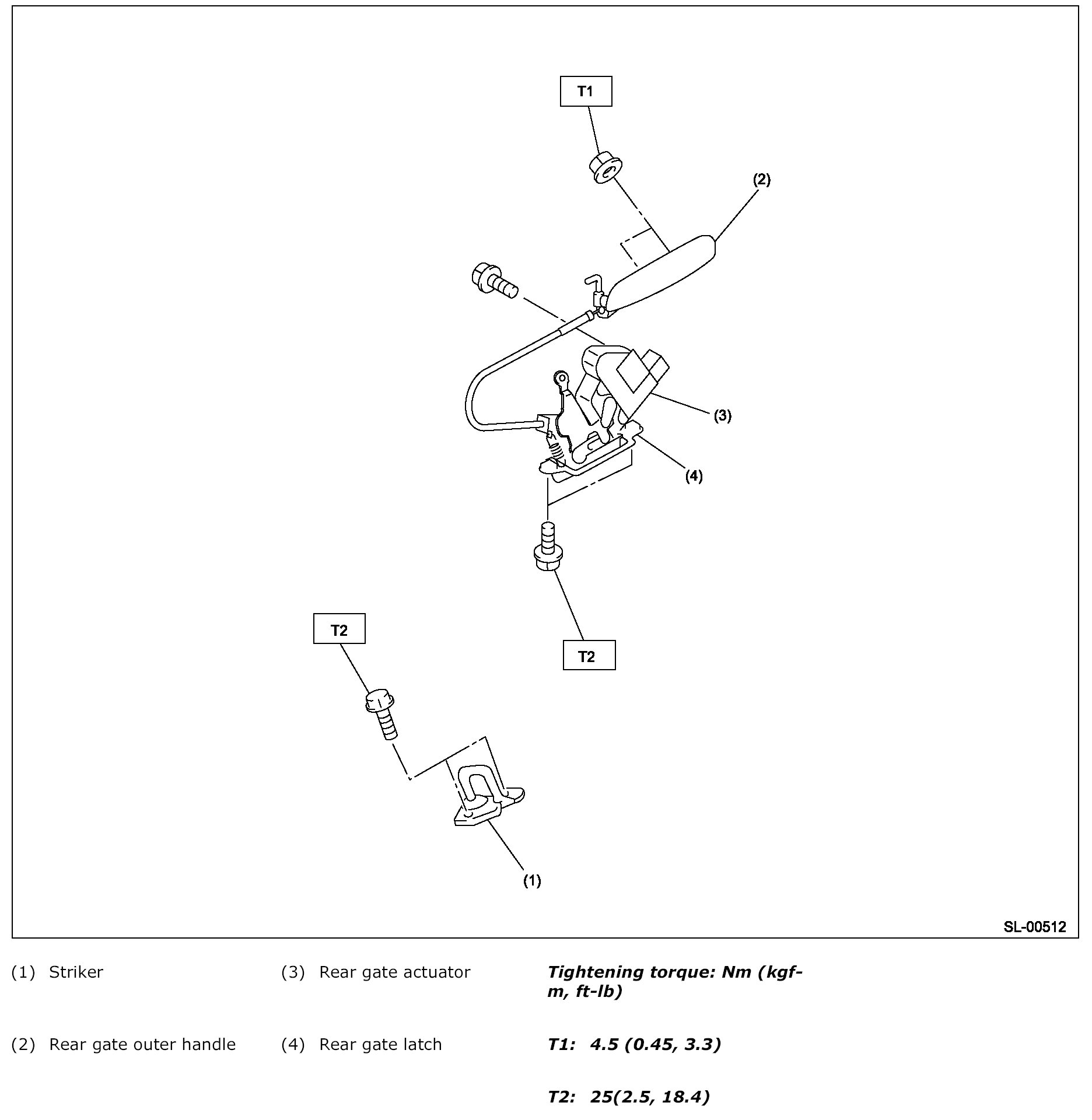 Make sure the outer handle and rear gate assembly is not deformed.