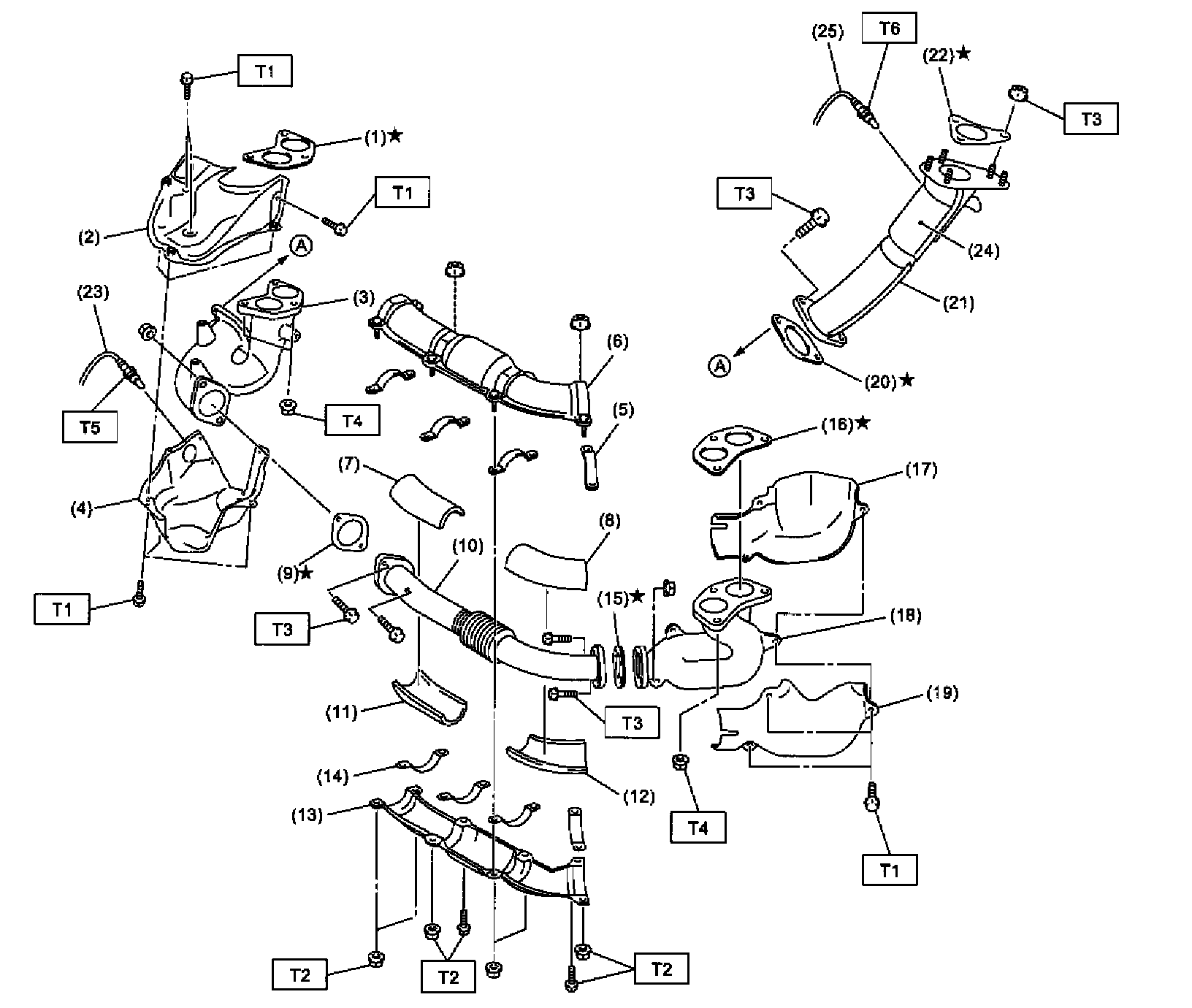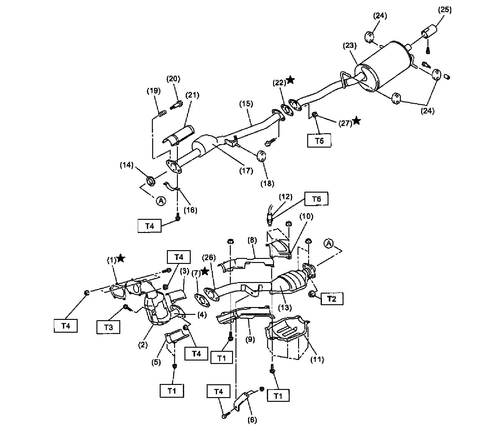 CENTER AND REAR EXHAUST PIPE, AND MUFFLER (Part 1):