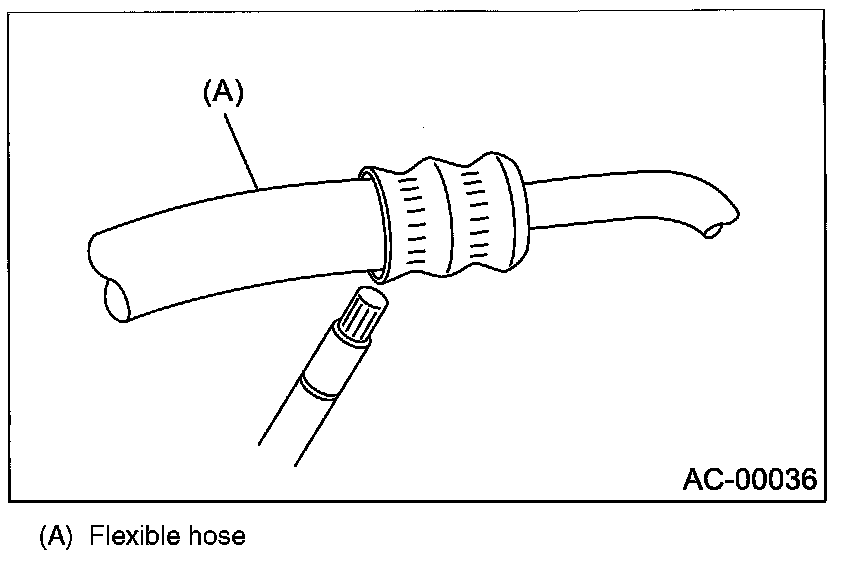 Starting from the connection between the high-pressure pipe and evaporator, check the system for leaks along the high-pressure side through the compressor. The following items must be checked thoroughly.